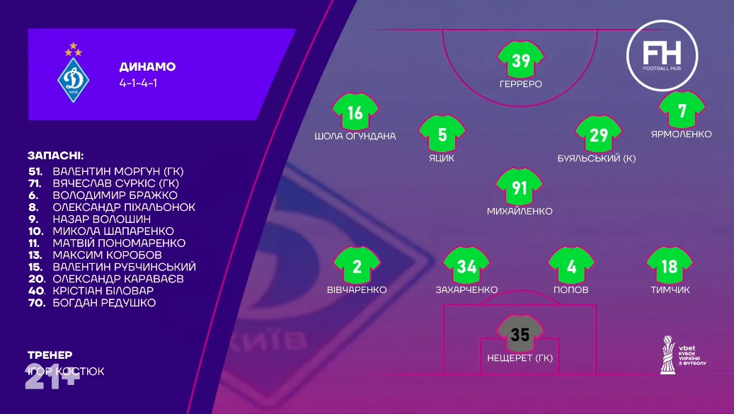 В раздевалке Игорь Костюк провел довольно логичные замены, сняв с пробега Буяльского и Шолу. На поле появились Пихаленок и Редушко, а уже через четыре минуты после старта второго тайма киевляне открыли счет.