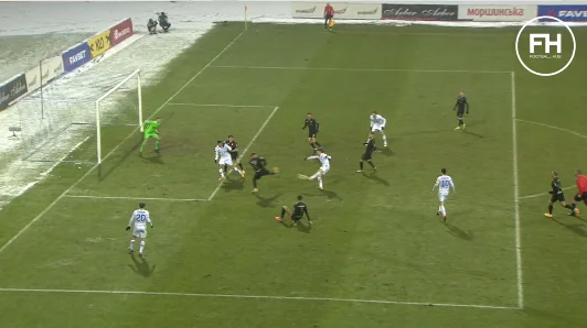 Колос может жаловаться на позицию Вербича, который, возможно, находился в офсайде во время первого удара Цыганкова. Словенец добивал, мяч снова отскочил к партнеру – гол.