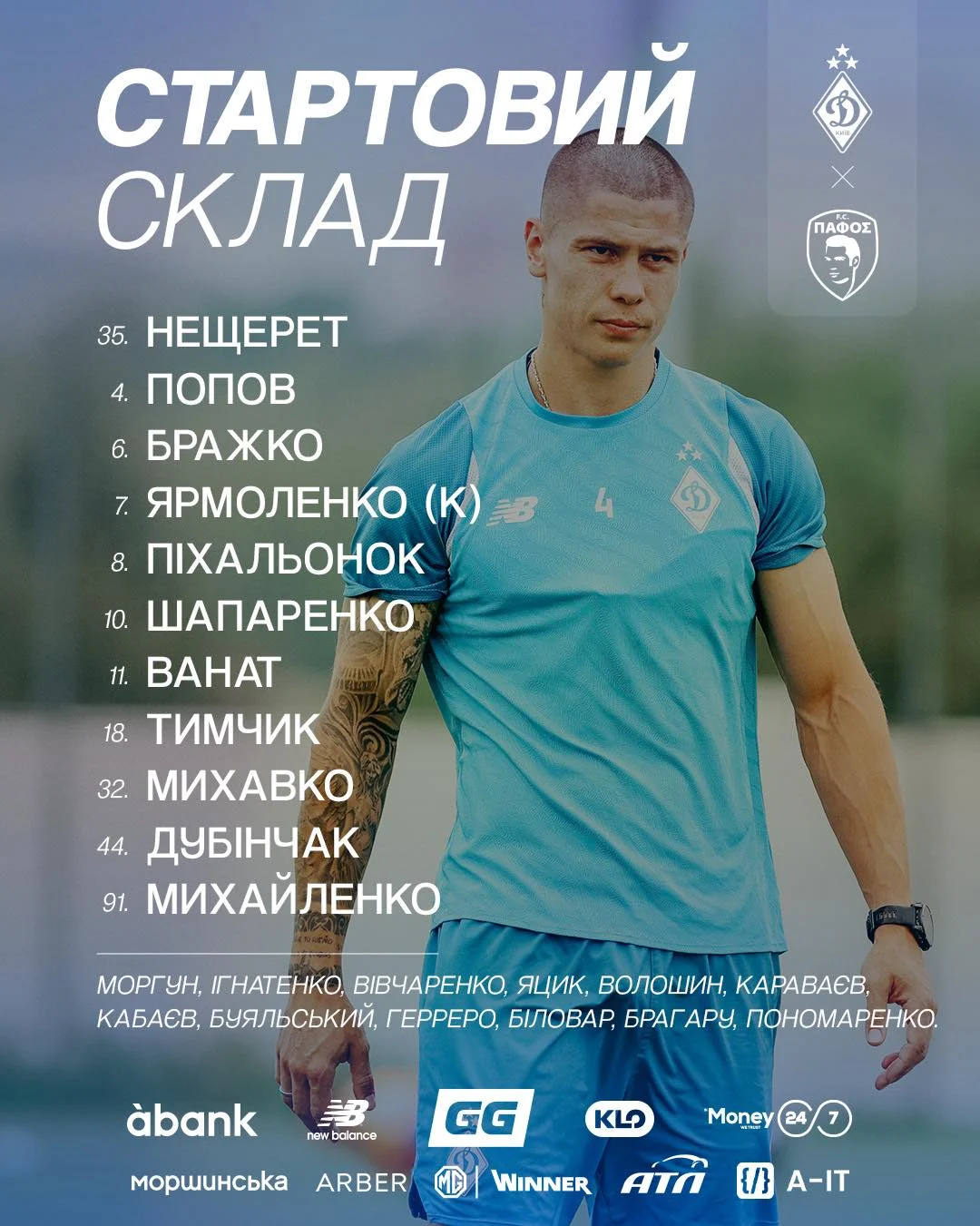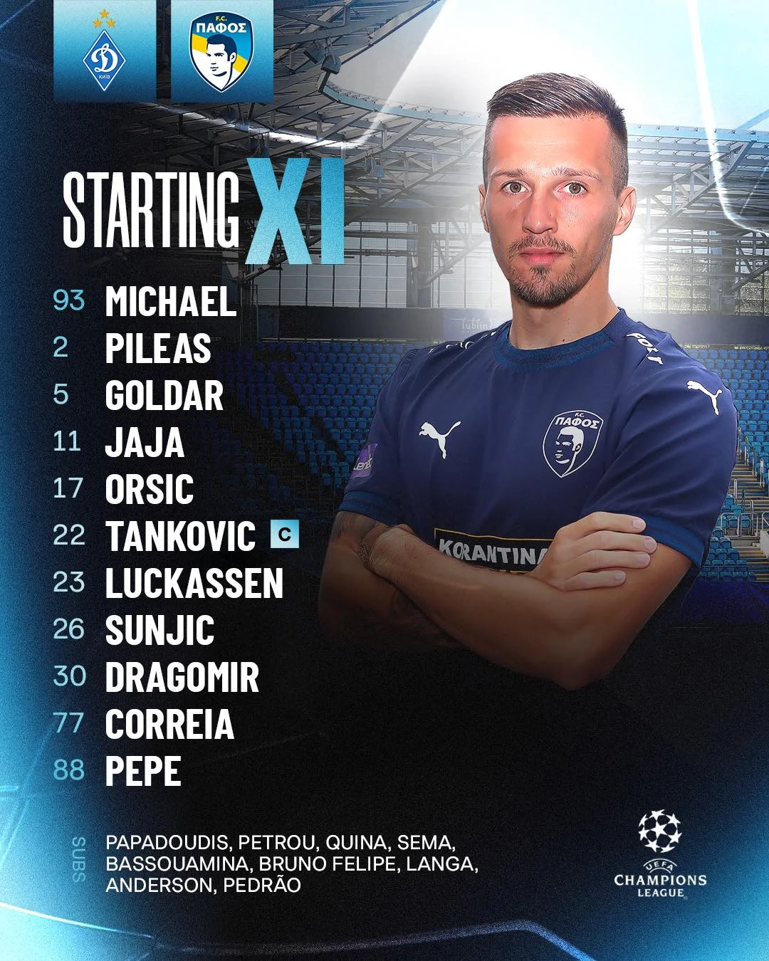 Динамо – Пафос: стартовые составы и онлайн-трансляция матча Лиги чемпионов