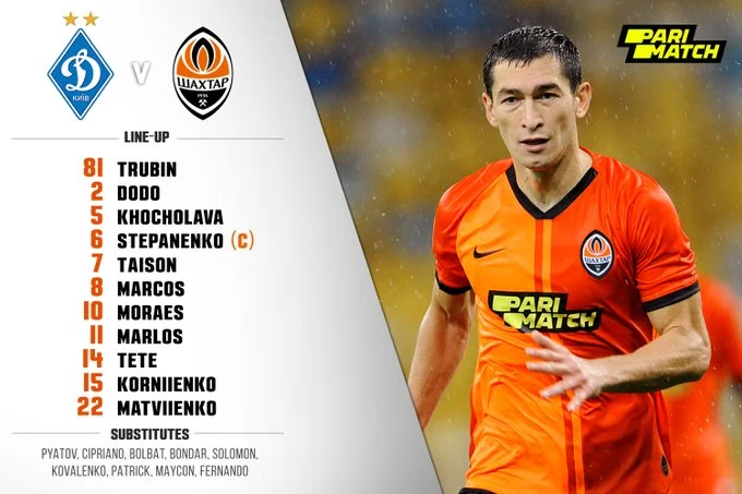 Шахтер: Трубин – Додо, Хочолава, Матвиенко, Корниенко – Степаненко (к), Антонио – Тете, Марлос, Тайсон – Мораес