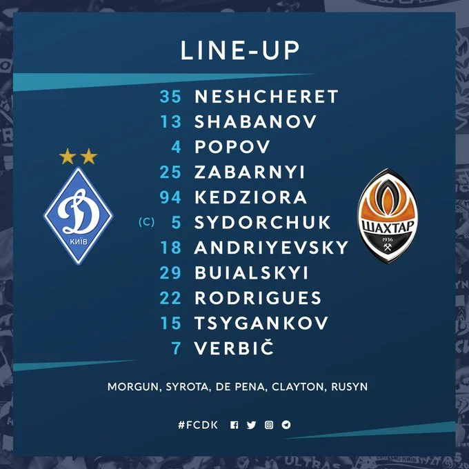 Динамо: Нещерет – Кендзера, Забарный, Попов, Шабанов – Андриевский, Сидорчук (к) – Цыганков, Буяльский, Жерсон – Вербич
