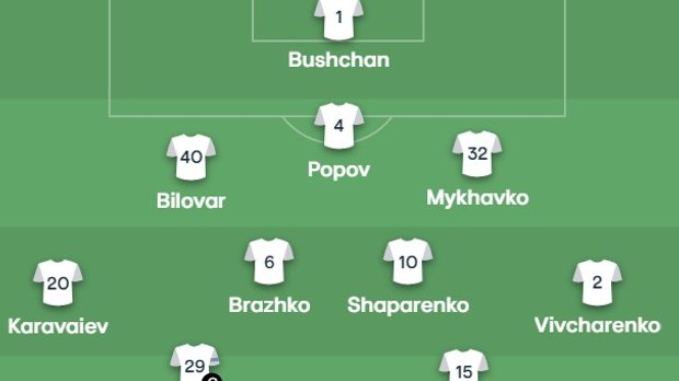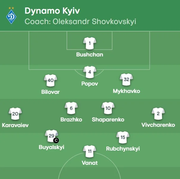 Динамо: Бущан – Биловар, Попов, Михавко – Караваев, Бражко, Шапаренко, Вивчаренко – Буяльский, Рубчинский – Ванат