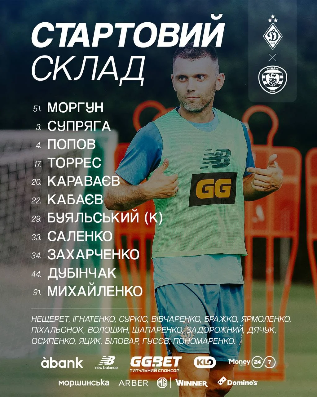Динамо: Моргун, Супряга, Попов, Торрес, Караваев, Кабаев, Буяльский, Саленко, Захарченко, Дубинчак, Михайленко.