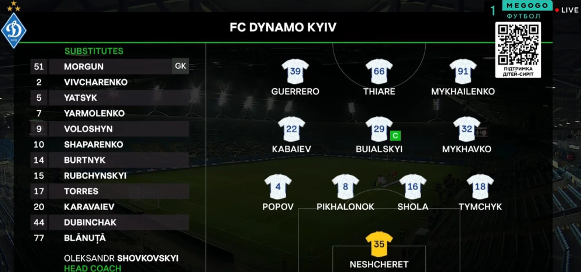 По крайней мере, в этом были уверены телевизионщики, которые выдали очень смешной титр с основным составом Динамо. Согласно видению УЕФА, центрбек Тиаре должен был играть на острие атаки, тогда как пару в центре защиты составили "десятка" Пихаленок и вингер Шола. Попов должен был бегать по флангу от флажка к флажку, а позицию правого вингера занял опорник Михайленко. Хотя изначально в трансляции была нормальная схема.