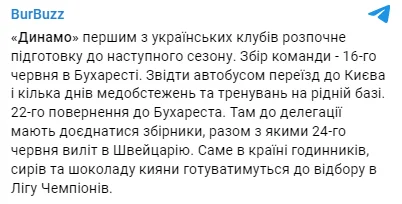 Динамо первым из украинских клубов приступит к подготовке к следующему сезону, сообщает Telegram-канал BurBuzz.