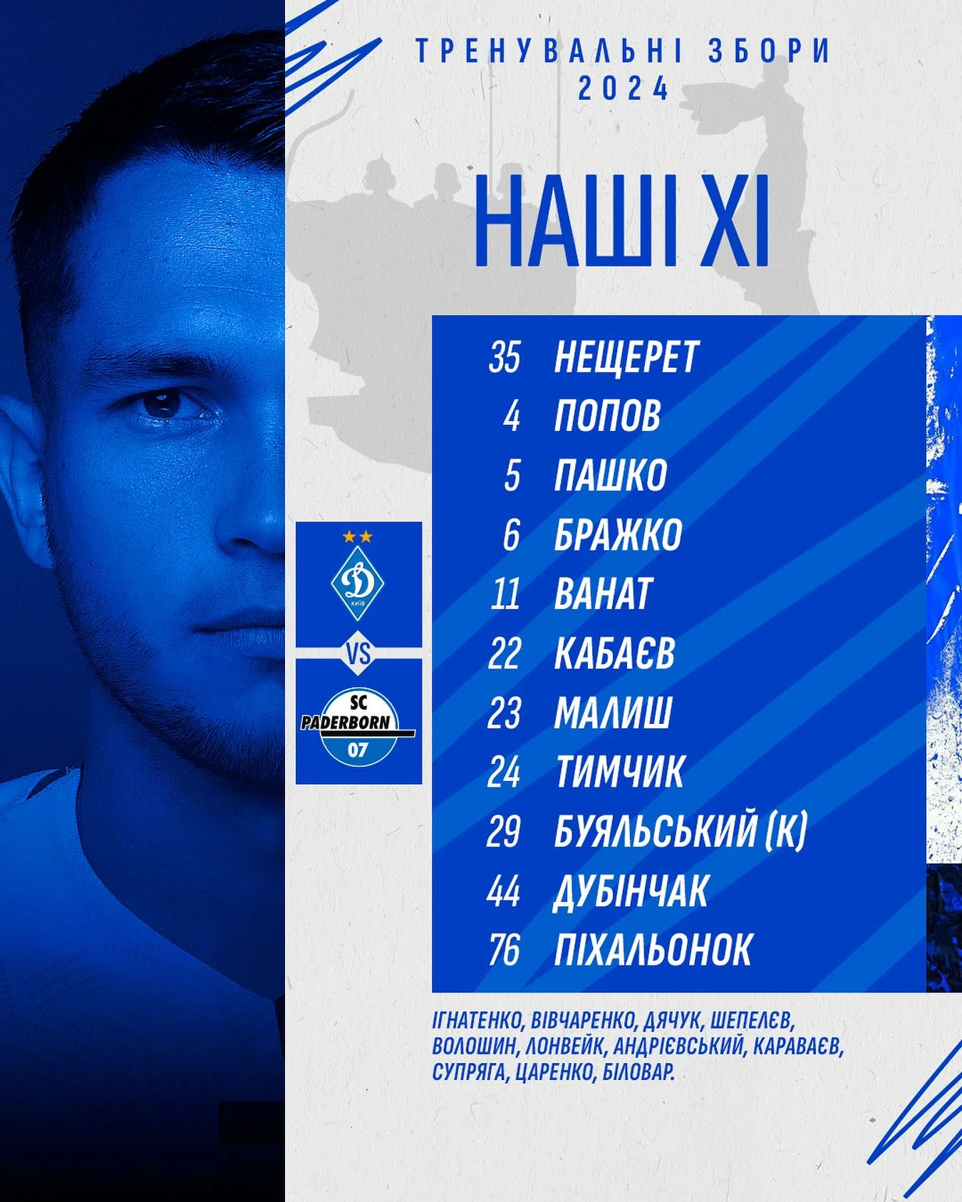 Динамо начинает активную подготовку к новому сезону товарищеским матчем с немецким Падерборном. Ищите составы и онлайн-трансляцию поединка на "Футбол 24".