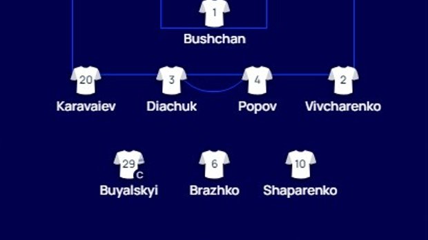 Динамо: Бущан – Караваев, Дячук, Попов, Вивчаренко – Буяльский (к), Бражко, Шапаренко – Ярмоленко, Ванат, Кабаев