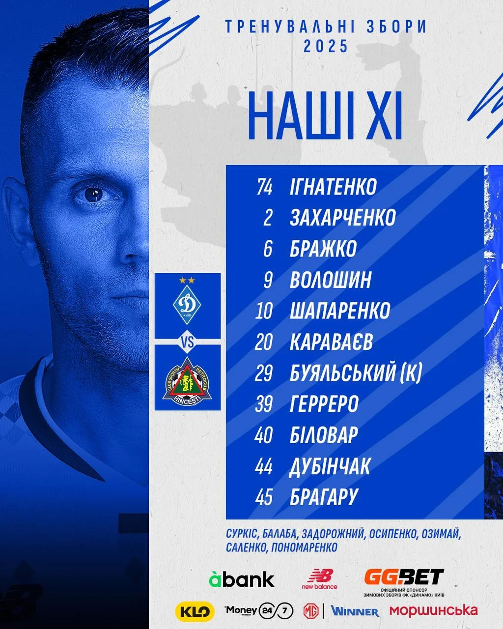 Стартовые составы Динамо: Игнатенко, Захарченко, Бражко, Волошин, Шапаренко, Караваев, Буяльский, Биловар, Дубинчак, Брагару, Герреро