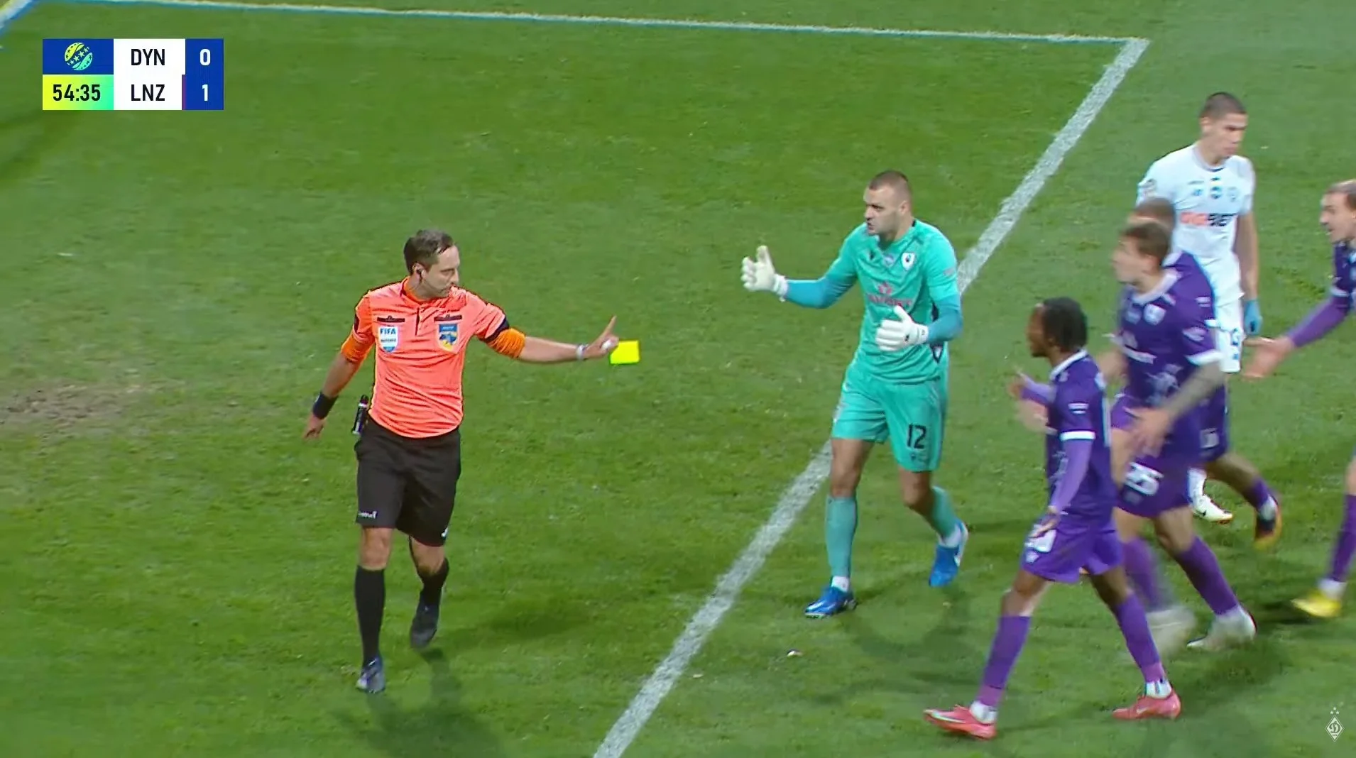 Асиннор на углу вратарской продавил Дубинчака, однако удар совсем не получился. А это уже Кабаев сажает на землю защитника и стреляет в ближний – неточно. Еще одна подача с левого фланга, Муравский прихватывает Попова, силовая борьба, Балакин свистит пенальти. После совета от VAR и просмотра повторов рефери в поле отменяет свое решение. Какое же напряжение над штрафной Динамо – можно павербанки заряжать! Несмотря на большое количество атак ЛНЗ стоит отметить и противодействие защитников. Киевляне героически защищают свою штрафную, в последний момент избегая ударов. Хотя и Оба под жесткой опекой Дубинчака сам не попал по мячу после паса Асиннора.
