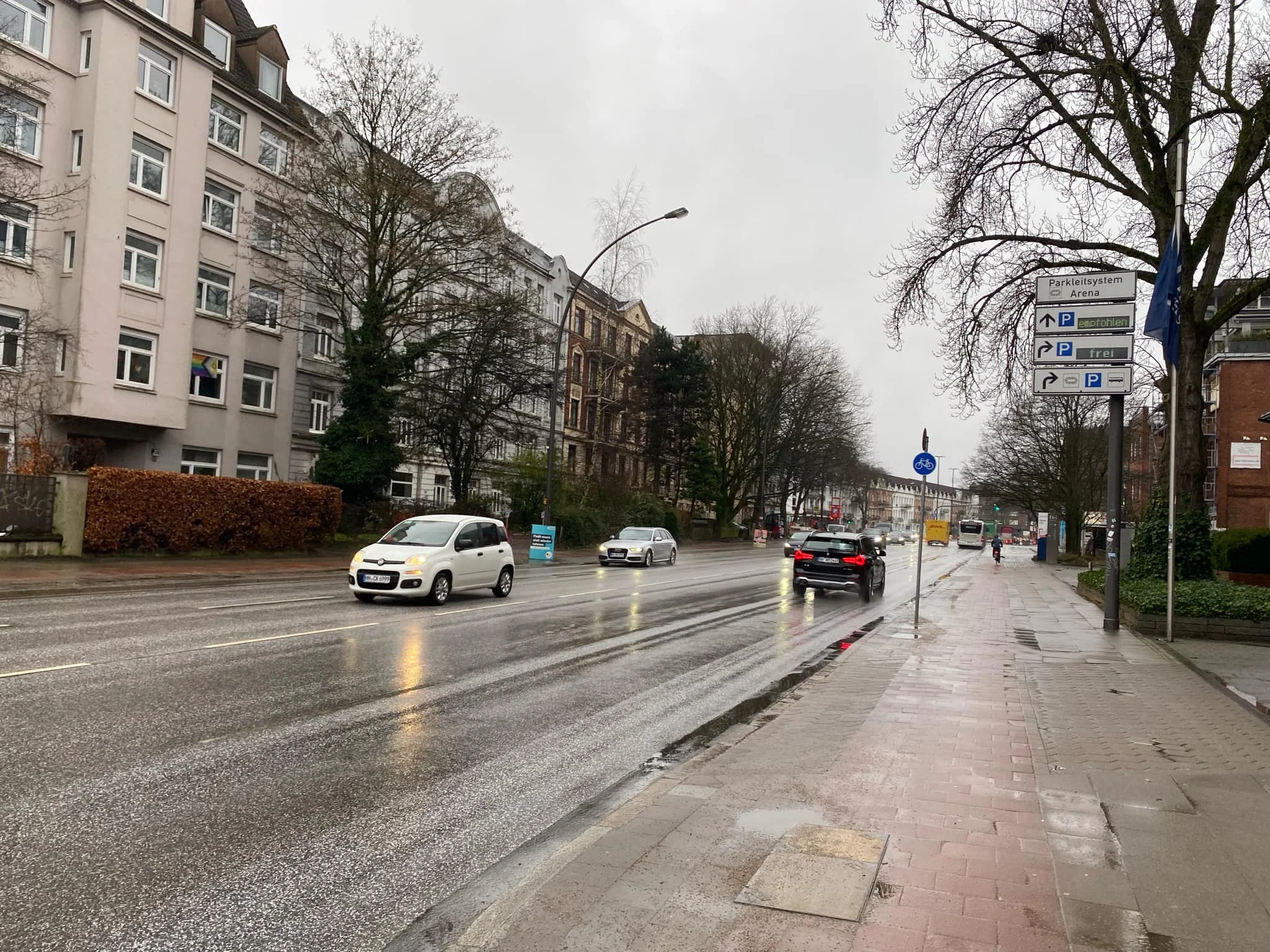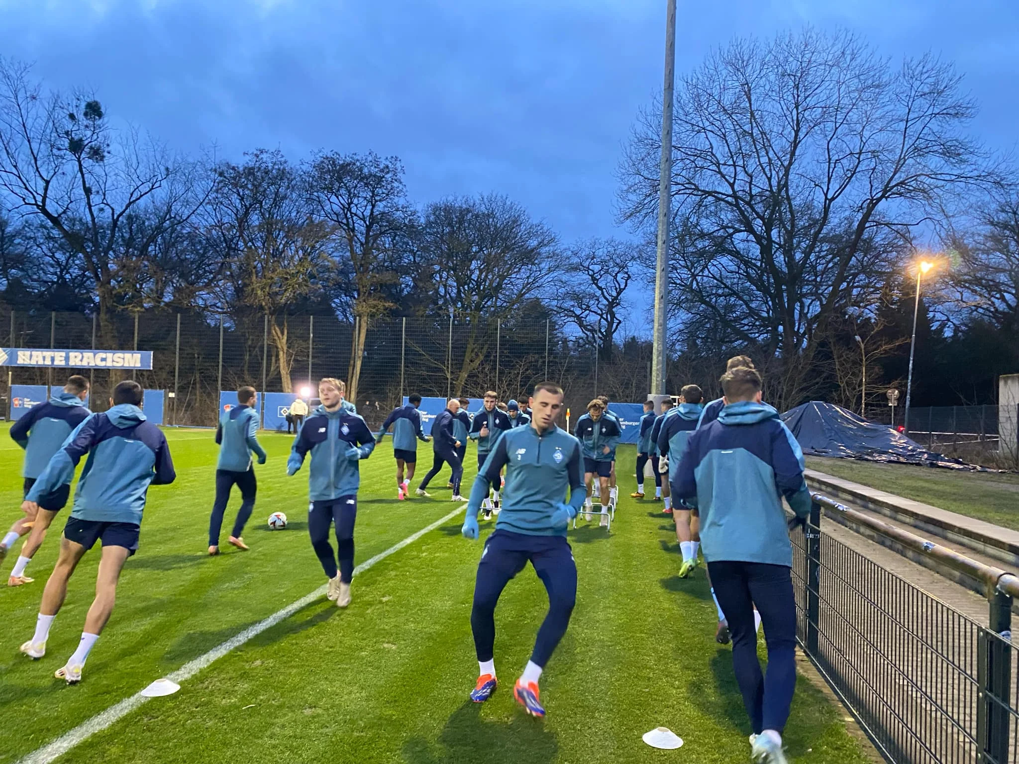 Гамбург вранці за день до гри привітав нас дощем. Погода була скоріше схожою на київську пізню осінь. Зовсім немає відчуття зими, а похмуре сіре небо абсолютно відбирало будь-яке бажання виходити на вулицю. Вітерець то вщухав, то знову розганявся. Під вечір розпогодилося, тому для тренування команди умови були доволі непогані. Що ж, типова примхлива гамбурзька погода, яка може змінюватися в день по декілька разів. До цього просто потрібно звикнути і не забувати парасольку :-)