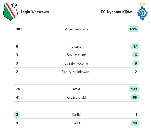 Кулач, Гармаш, Вивчаренко. Андриевский завершал атаку веером, но дал выше. Шепелев дважды чуть не убежал на отличную ударную позицию. Роскошные забросы в свободное пространство от Гармаша и Андриевского. Бесдин сбрасывает под удар для Бражко, минимальный промах. Классный футбол Динамо, пусть и на фоне достаточно кризисного ныне середняка чемпионата Польши. Первая победа в истории над Легией (с 5 попытки).