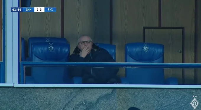 А забило снова Динамо. На 43-й минуте второй раз ошибся Герета. Вратарь, как и в случае с первым голом, неудачно выбил мяч. Кабаев опередил Пидгурского, тоже сыгравшего не лучшим образом. Владислав вошел в штрафную, качнул соперника и левой пробил в дальний угол. Дебютный гол Кабаева за Динамо в официальных матчах. Игорь Суркис сразу же отметил это событие зажженной сигаретой в VIP-ложе. 2:0 после первого тайма – Рух больше владел мячом (56 против 44%) и имел моменты, но две индивидуальные ошибки привели к двум пропущенным голам.
