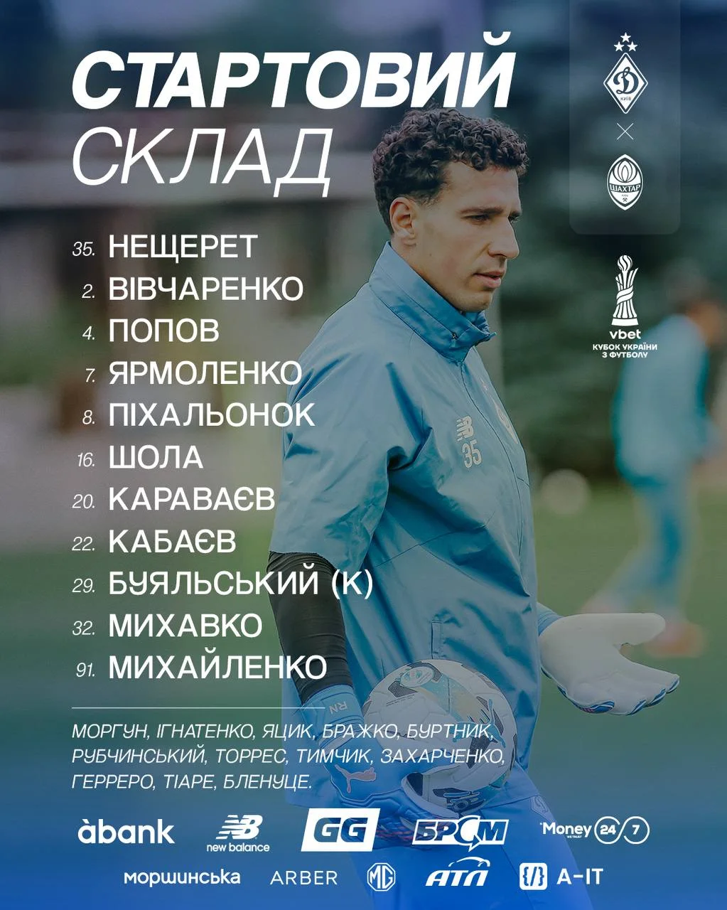 Запасные Динамо: Моргун, Игнатенко, Яцик, Бражко, Буртник, Рубчинский, Анхель Торрес, Тымчик, Захарченко, Герреро, Тиаре, Бленуце.