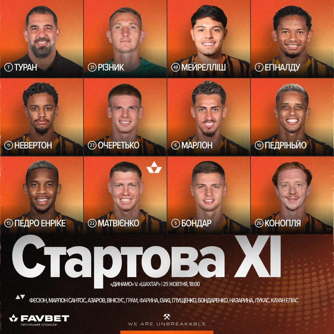 Запасные Шахтера: Фесюн, Марлон, Изаки Силва, Азаров, Винисиус Тобиас, Грам, Элиас, Глущенко, Бондаренко, Назарина, Лукас Феррейра, Фарина.