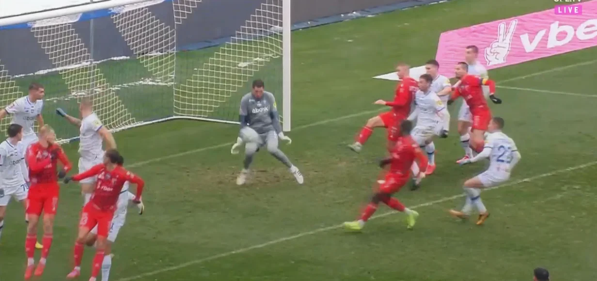 Хозяева разыграли классную заготовку на стандарте. Пихаленок сбросил мяч Буяльскому, а тот сразу же выполнил разрезной пас в штрафную. Ванат же в касание пробил низом – точно в левый нижний угол! 1:0.