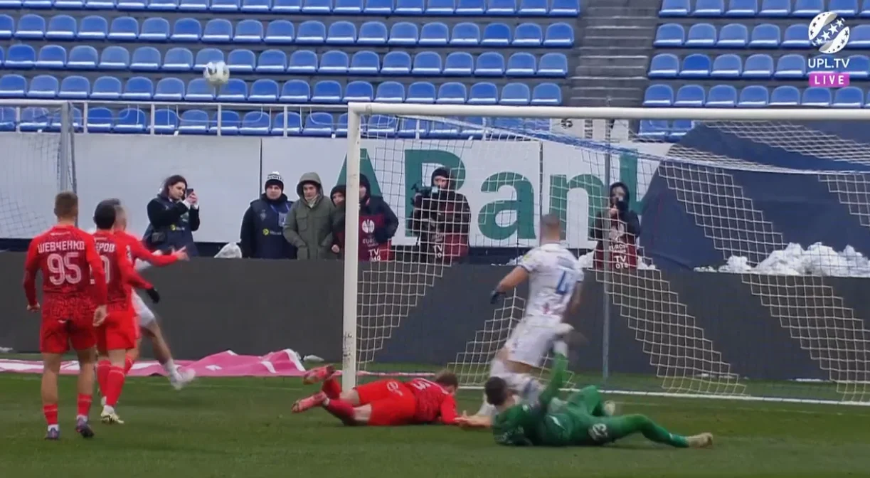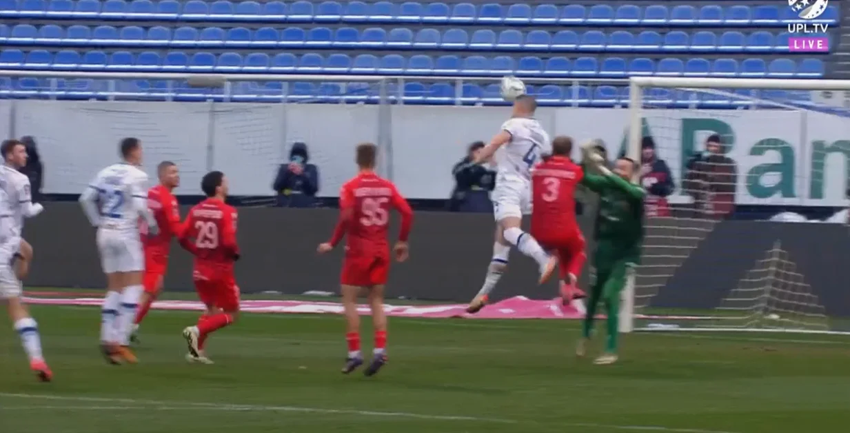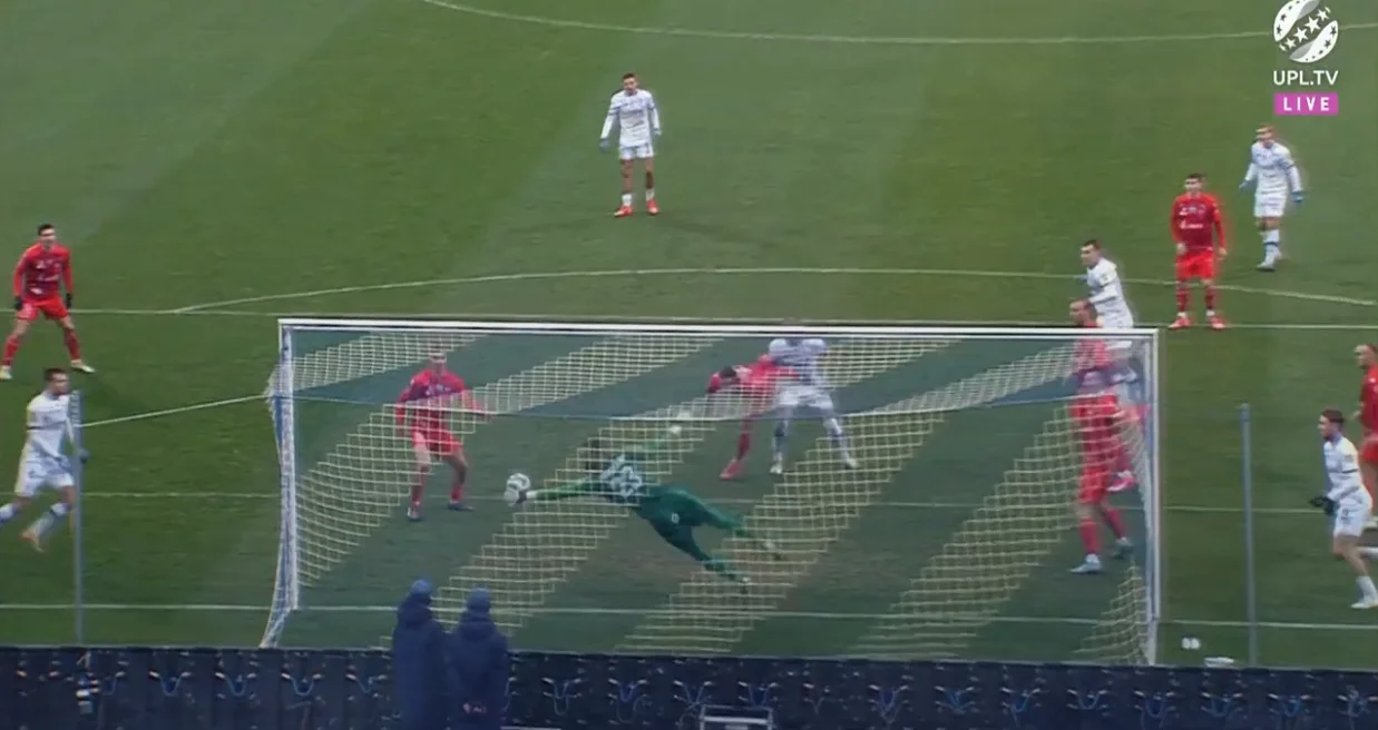 Верес тоже ничего не создавал. Единственный опасный эпизод у ворот Динамо произошел на 40-й минуте, когда Бущан неуклюже сыграл на выходе. Георгий коленями отбил подачу, а мяч срикошетил от защитника на Луана. Бразилец пробил головой в створ, однако Вивчаренко выбил сферу с линии!