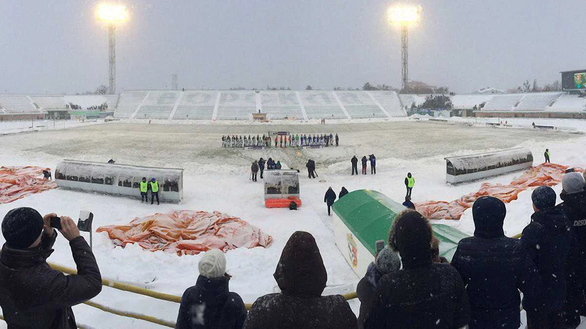 Игра проходила на покрытом снегом газоне. К таким условиям быстрее привыкли гости, который уже на 5-й минуте открыли счет после великолепной атаки по центру благодаря коротким передачам. В ее завершающей стадии Мораес отдал на Сидорчука, который забил в пустые ворота. А на 14-й минуте киевляне удвоили свое преимущество. Чеснаков завалил в штрафной Цыганкова, а Ярмоленко точно пробил с пенальти.