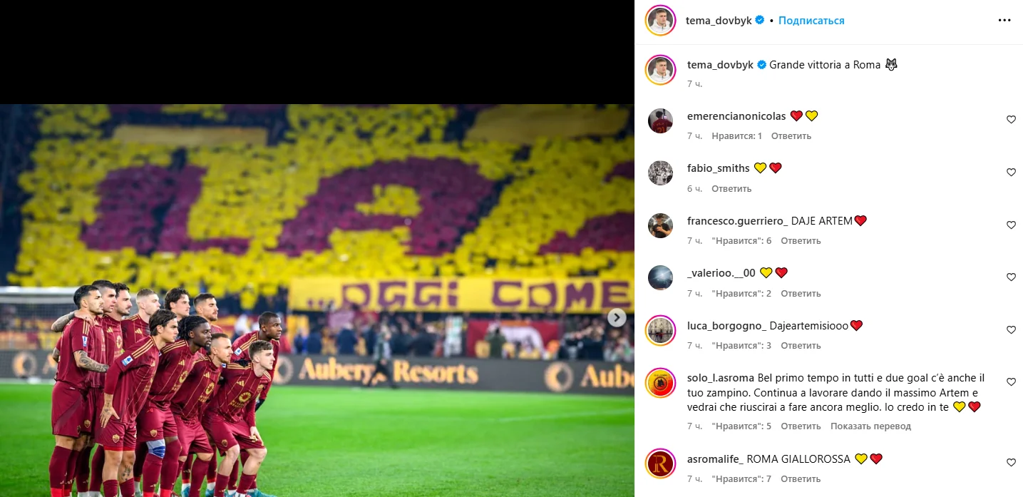 "Великая победа в Риме", – лаконично написал Довбик на личной странице в Instagram.