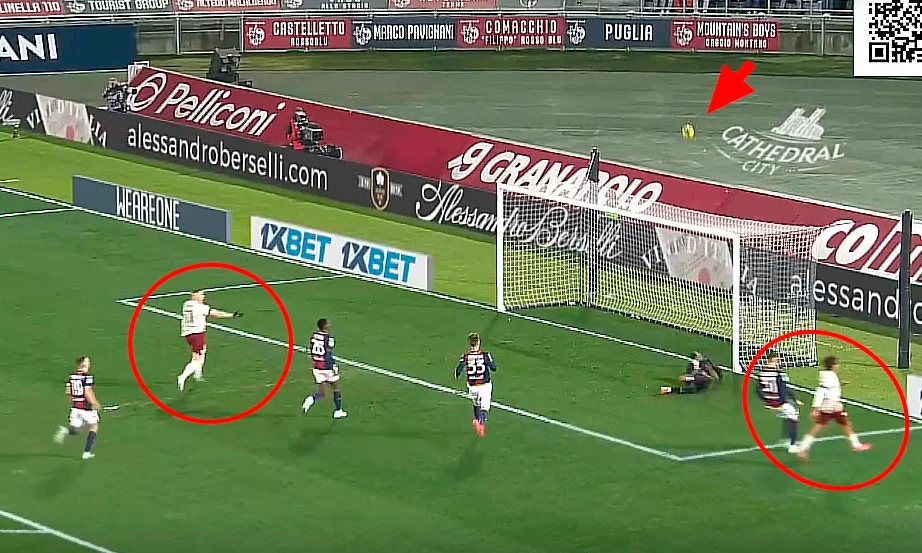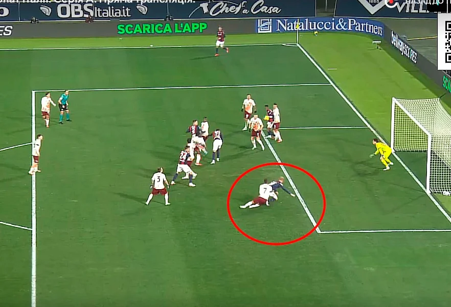 Прошло полчаса, когда в штрафной Болоньи наконец возникла опасность. Паредес забросил, надеясь на удачу. Довбык сумел остановить, к чему оказался не готовым Лукуми. Если бы на помощь не примчался другой защитник, украинец мог пробивать почти с линии вратарской. Далее угловой, после кого классно бил Паредес. Скорупский потащил, а Дибале не дали сыграть на добивании.