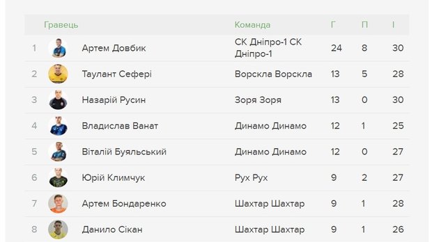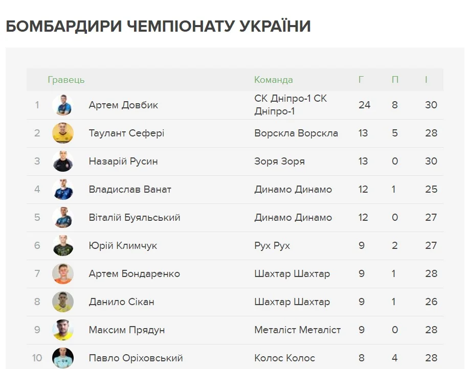 Интересно, что у топ-3 обошлось без представителей наших грандов. Киевляне Владислав Ванат и Виталий Буяльский забили по 12 голов, а у лучшего из Шахтера – Артема Бондаренко – 9.