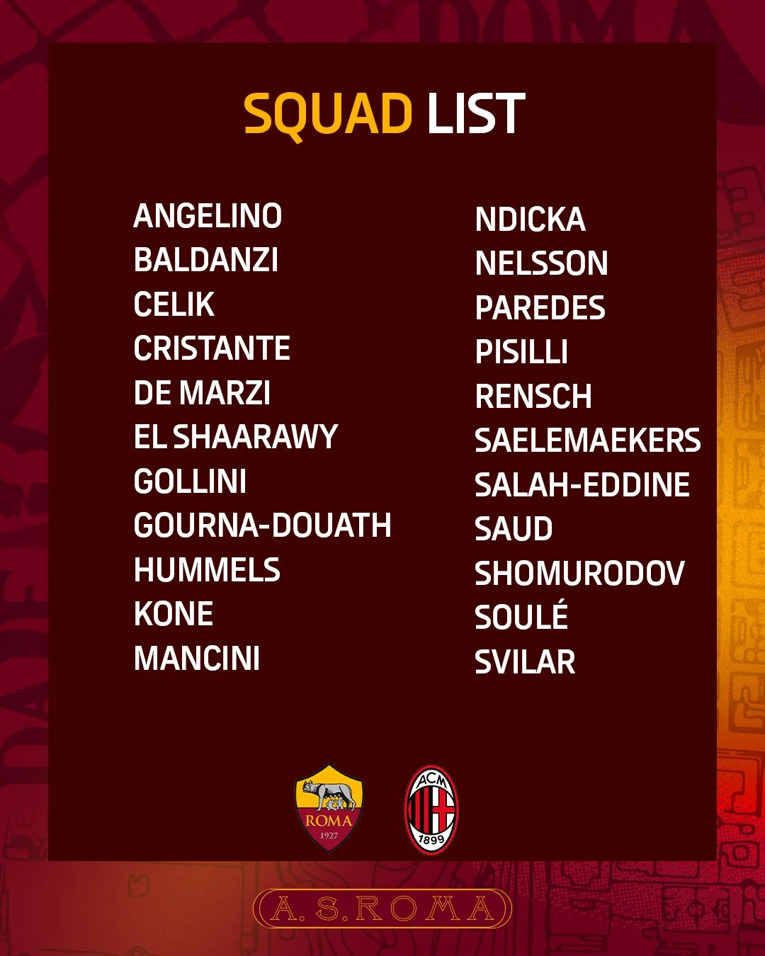 Ранее сообщалось, что украинский нападающий Ромы Артем Довбик получил повреждение на вчерашней тренировке своей команды. Сегодня пресс-служба "волков" уже опубликовала заявку на завтрашний матч с Миланом, и Артема в ней нет.