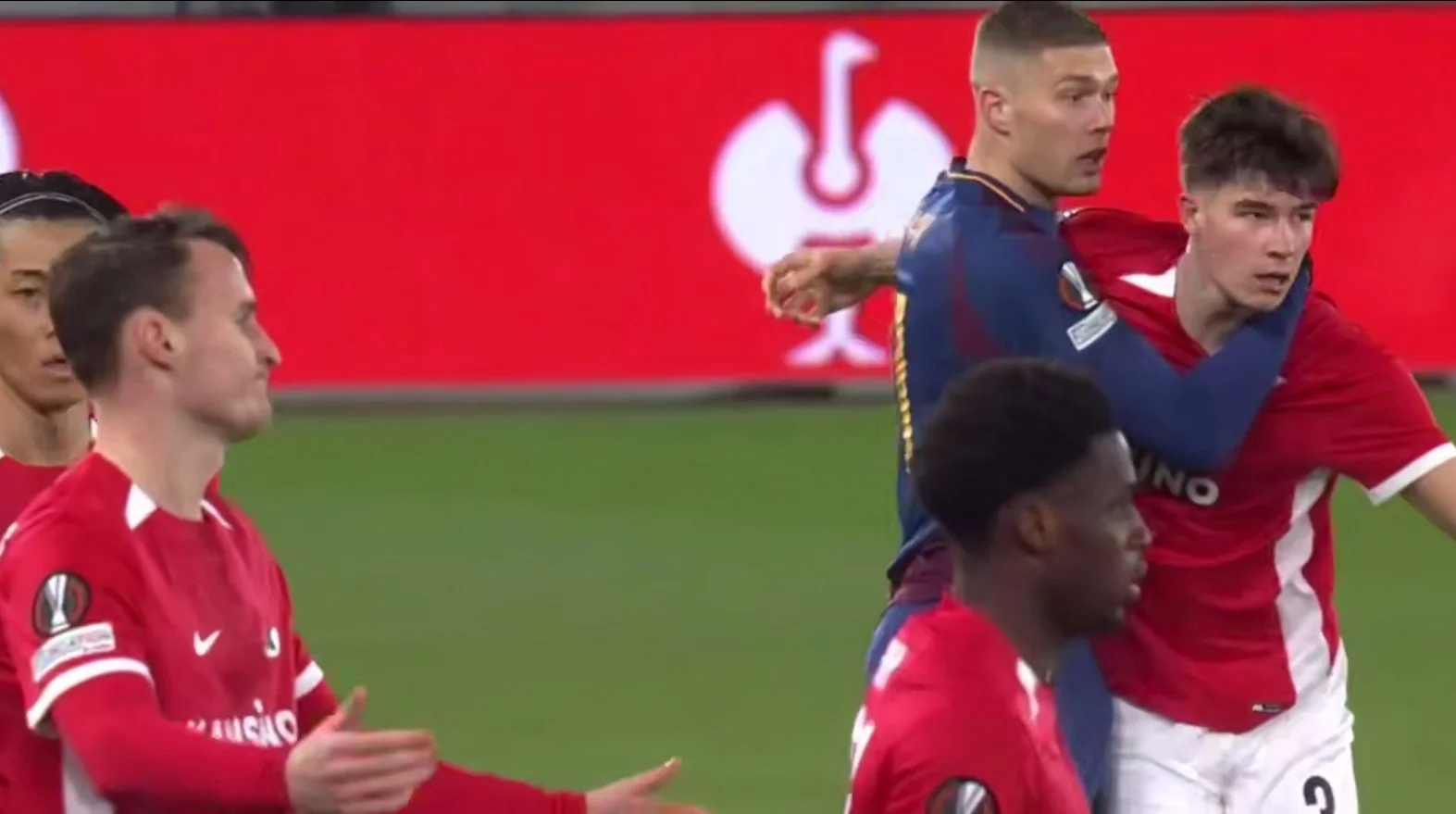 Дуэль Ваутера Гуса и Артема Довбика была зажигательной с самого начала. Боснийский рефери Ирфан Пельто вынужден был предупреждать для начала устно. Затем украинский форвард озверел и даже схватил за шею 20-летнего защитника. Дальше была игра, кто кого больше за футболку передернет. Как кульминация – Довбик отмахнулся от Гуса, из губы которого потекла кровь. Это желтая. И очень хорошо, что так. Раньери все понял и заменил украинца в перерыве. Хотя Артем еще успел неплохо развернуться и пробить метров с 25 – вратарь на месте.