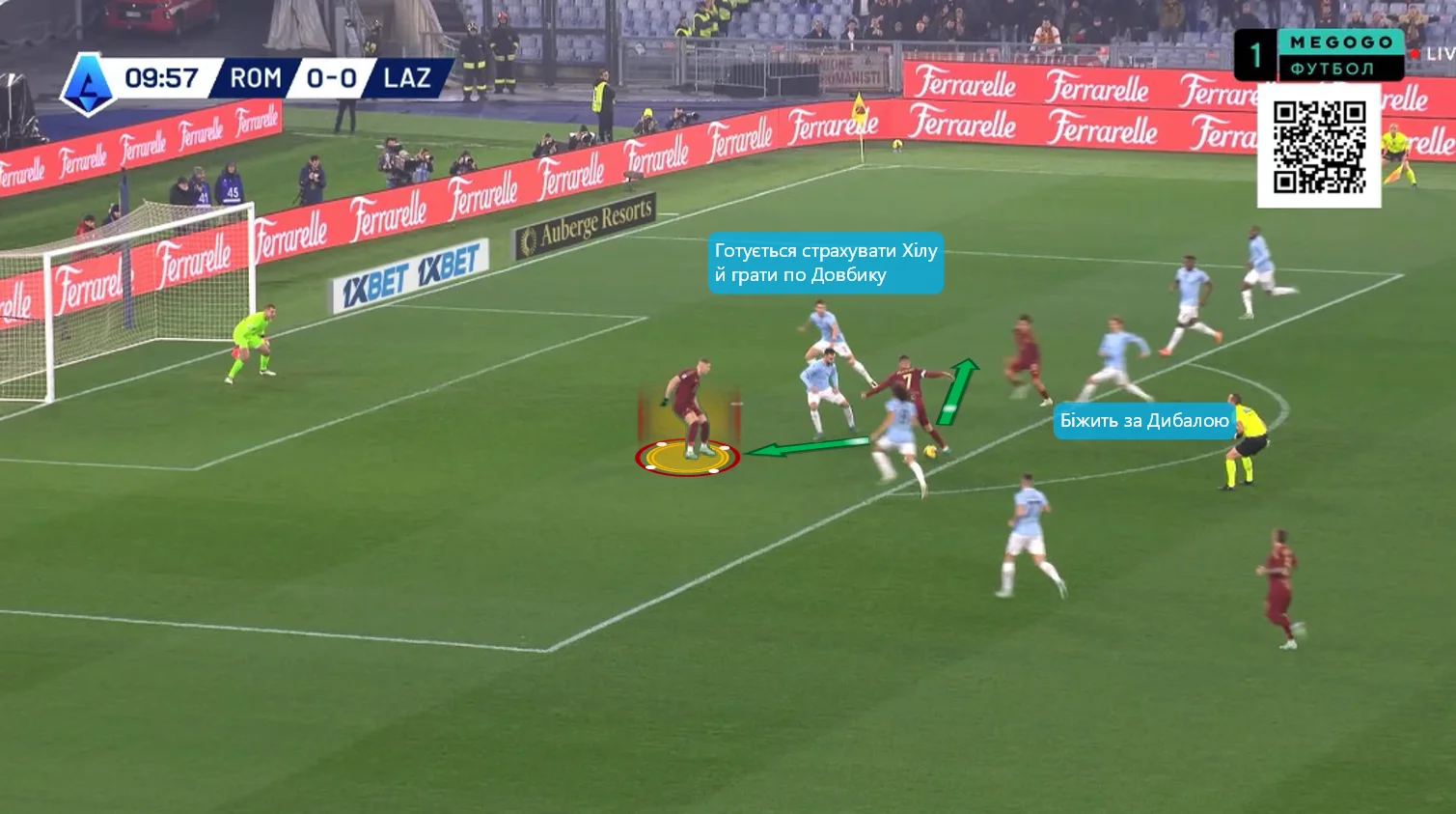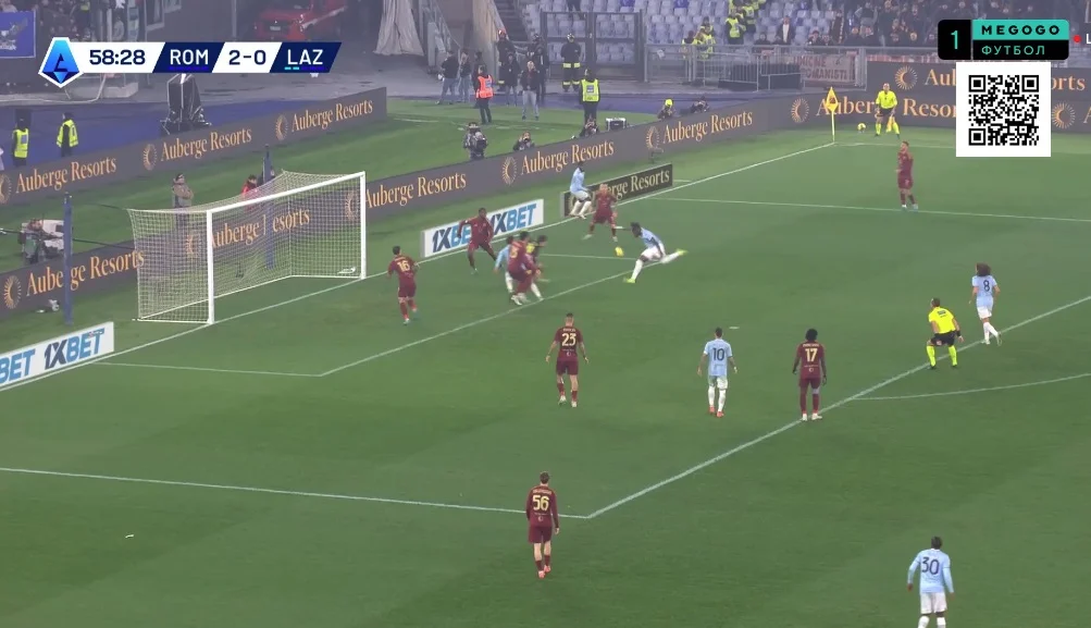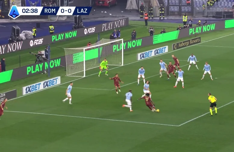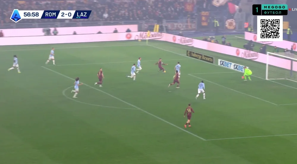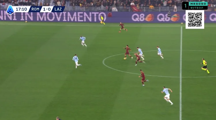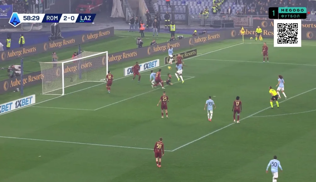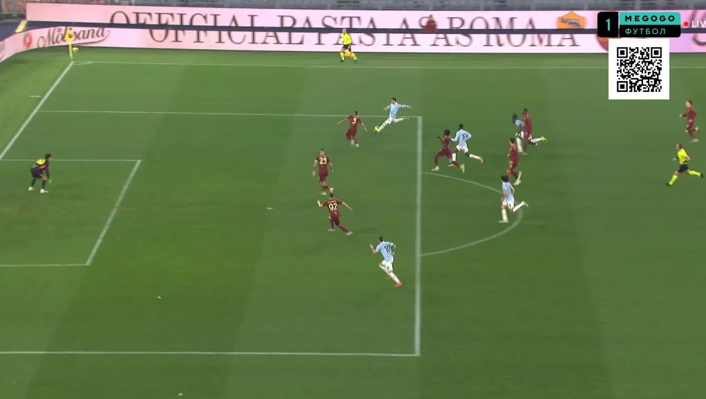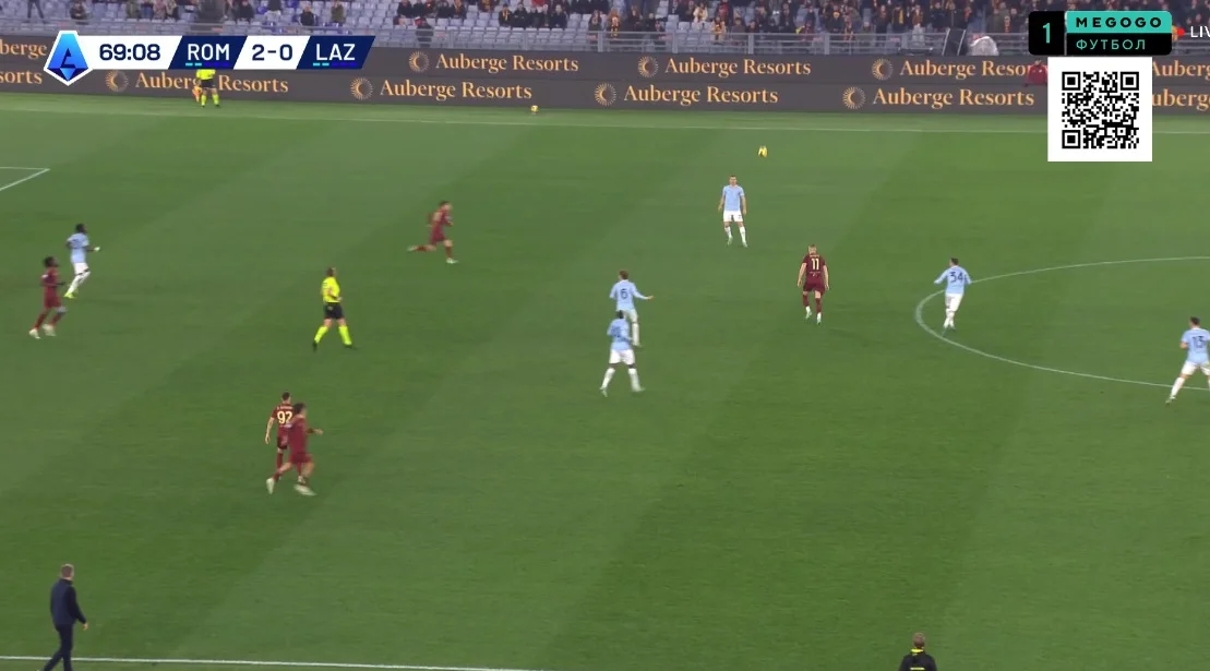 На 10-й Довбик отклеился от Романьоли в опорной зоне и принял длинную передачу от Ндика, сразу же сбросив мяч Пеллегрини. Лоренцо перевел на Дибалу и побежал на линию штрафной, а Пауло отдал передачу на правый фланг Салемакерсу
