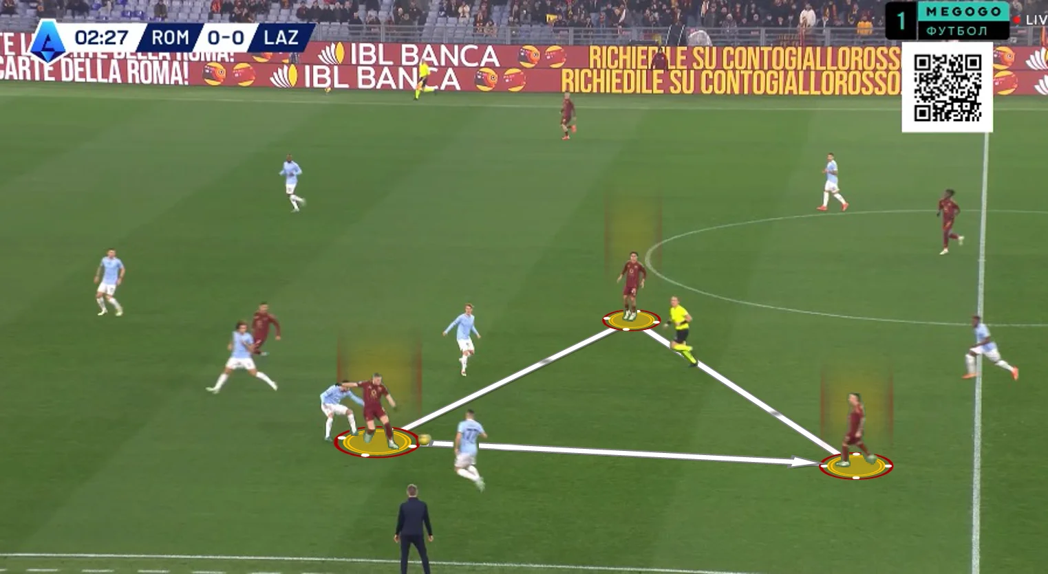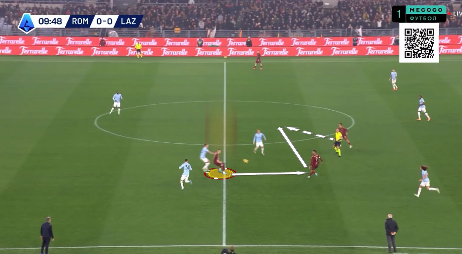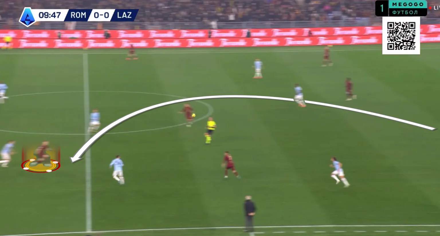 На 10-й Довбик отклеился от Романьоли в опорной зоне и принял длинную передачу от Ндика, сразу же сбросив мяч Пеллегрини. Лоренцо перевел на Дибалу и побежал на линию штрафной, а Пауло отдал передачу на правый фланг Салемакерсу