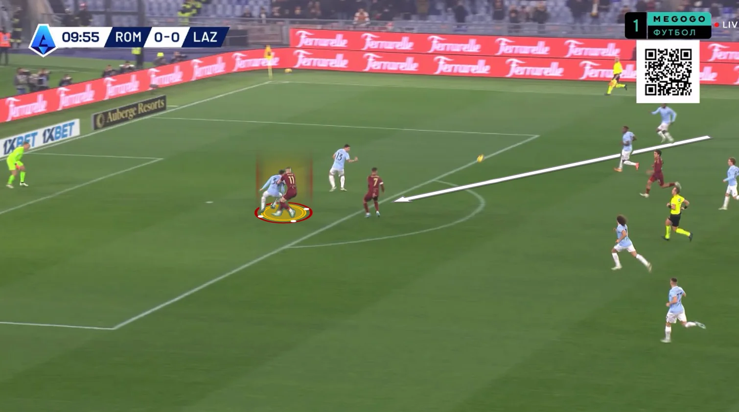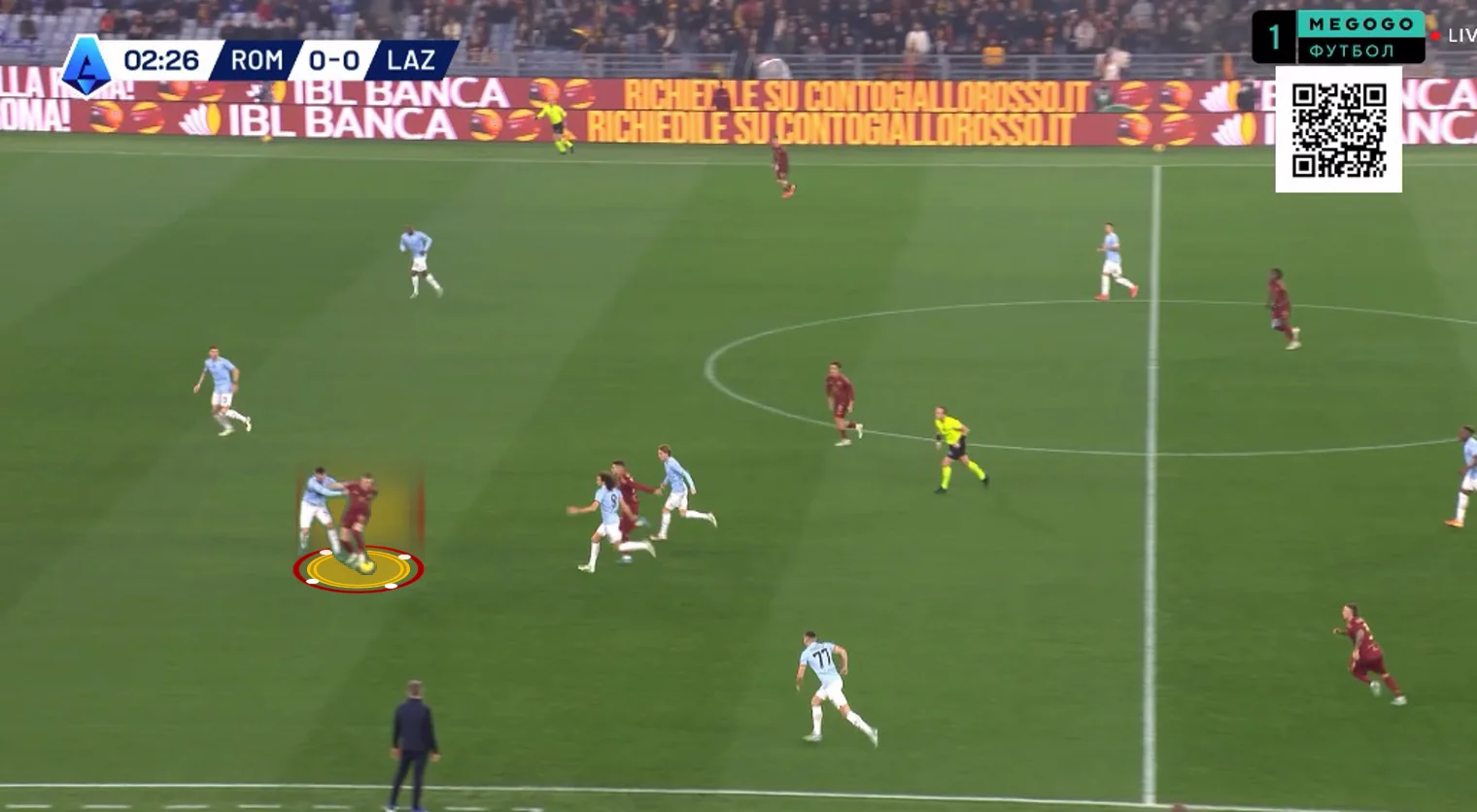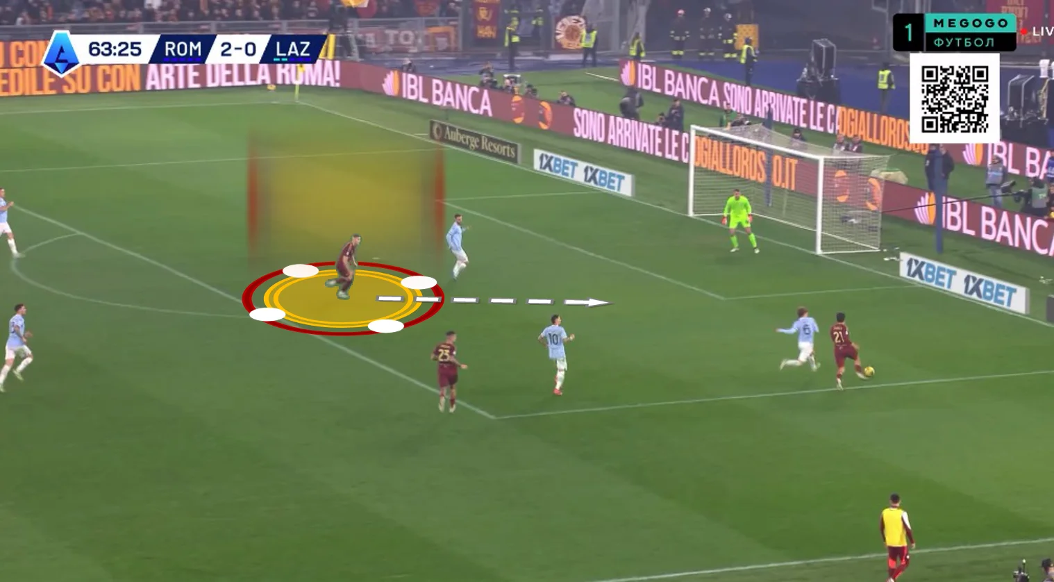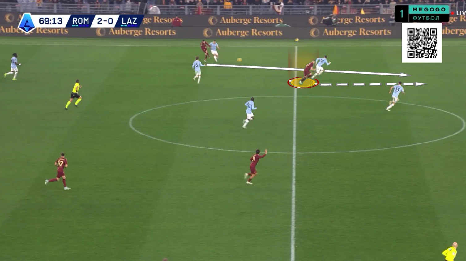 На 10-й Довбик отклеился от Романьоли в опорной зоне и принял длинную передачу от Ндика, сразу же сбросив мяч Пеллегрини. Лоренцо перевел на Дибалу и побежал на линию штрафной, а Пауло отдал передачу на правый фланг Салемакерсу