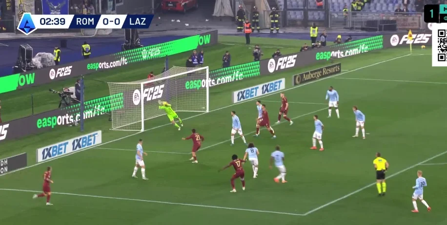 На 59-й минуте произошел момент с попаданиями в перекладину Ромы. Диа откликнулся на подачу из глубины, сбросив мяч вдоль вратарской на Чауну. Тот подбил мяч над Свиларом, а мяч по дуге медленно упал на каркас.