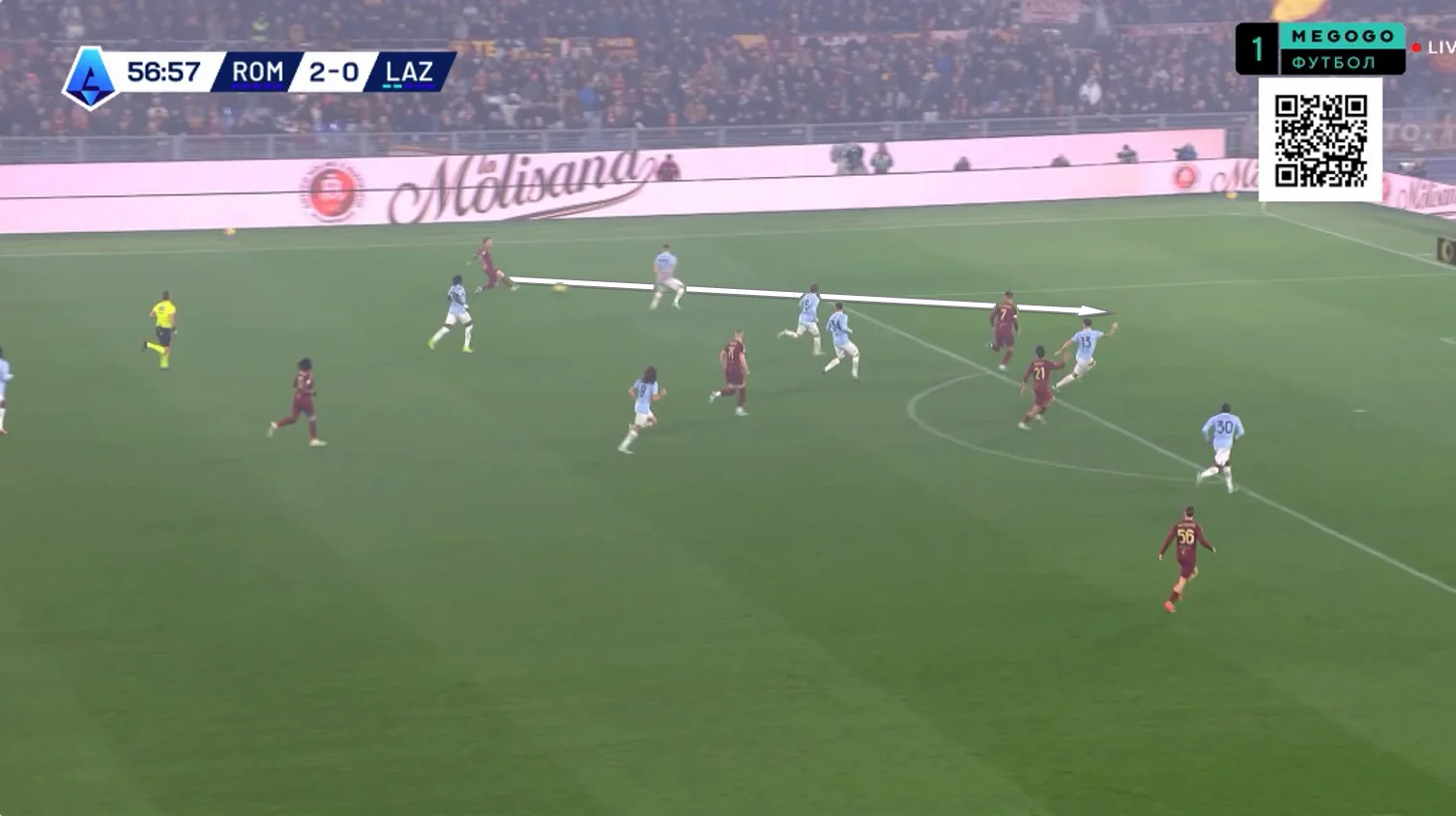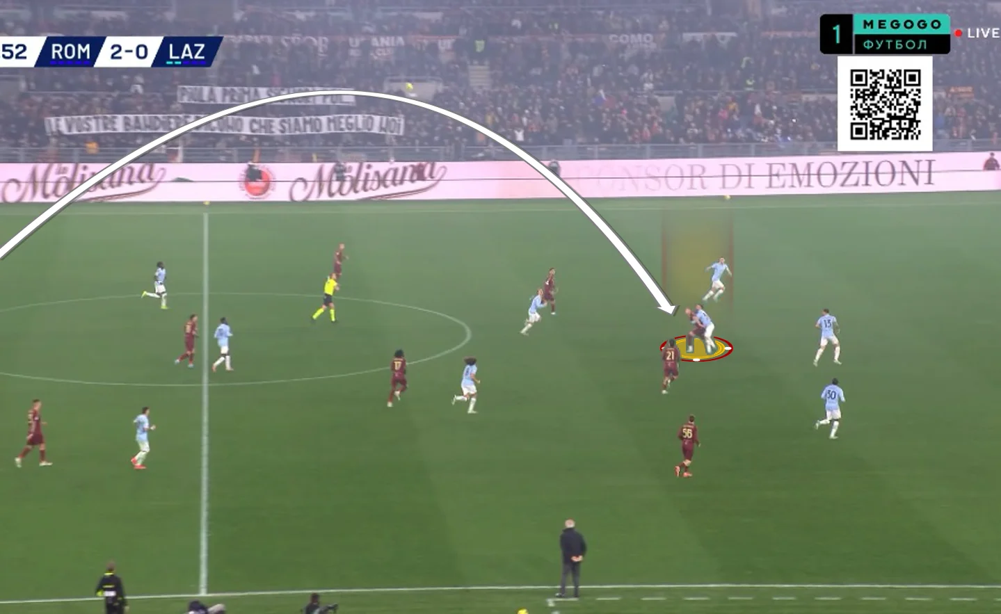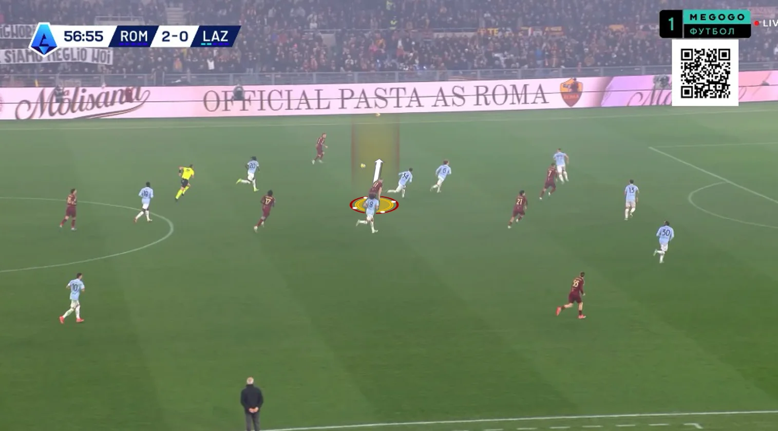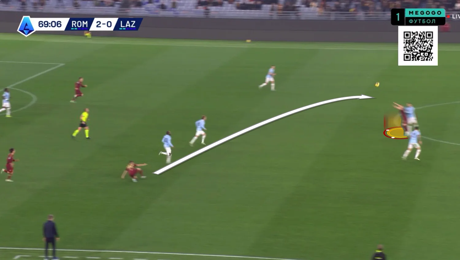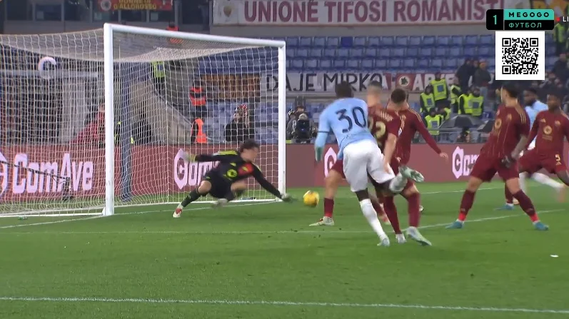 Анхелиньо подхватил сферу и выполнил проникающий пас на левый край штрафной, откуда стрелял Пеллегрини – Проведель спас Лацио!