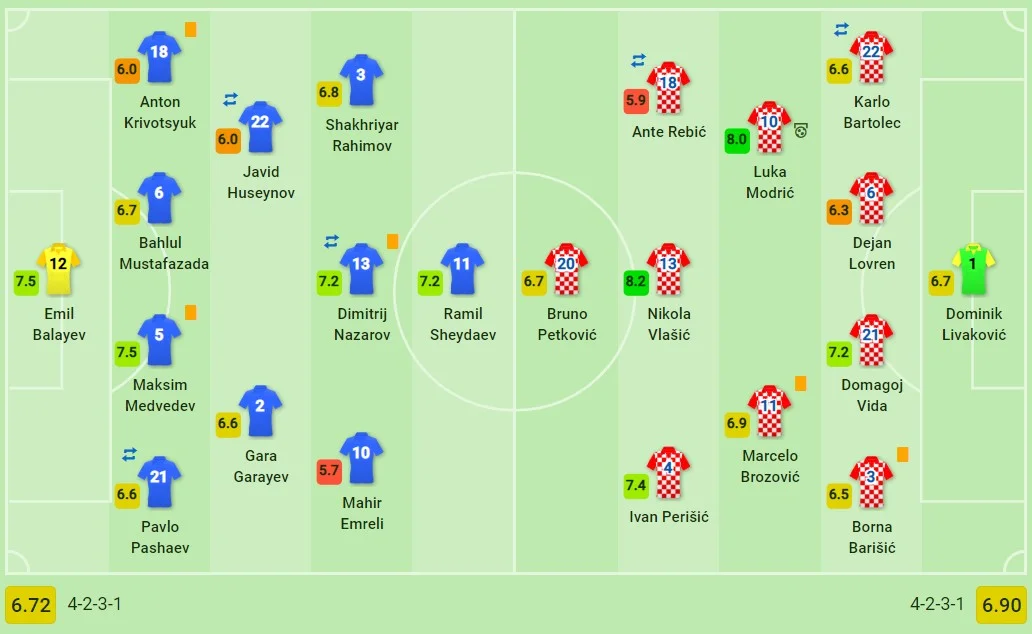 В первом тайме хорваты доминировали, а вот после перерыва сбавили обороты. Как следствие – под занавес встречи Азербайджан сумел отыграться. Хализада самостоятельно прорвался сквозь оборону гостей и сравнял счет. Финальный свисток зафиксировал ничью – 1:1.