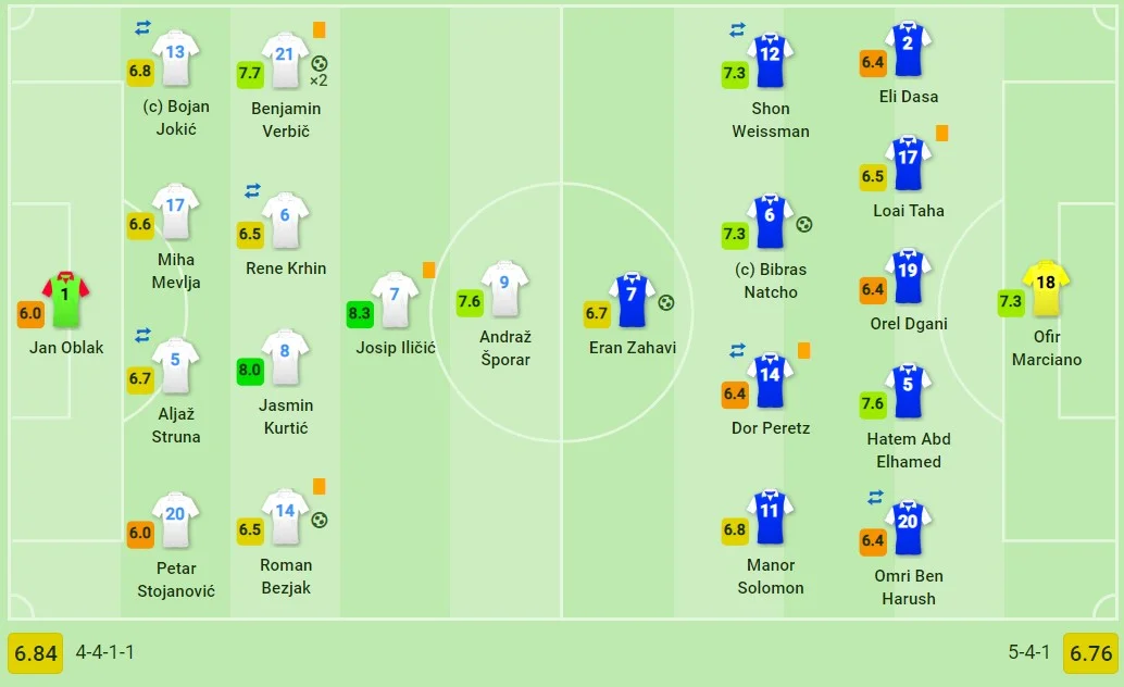 Вербич, конечно, стал одним из лучших игроков встречи с оценкой 7.7, а вот Соломон несколько потерялся в составе Израиля – 6.8.