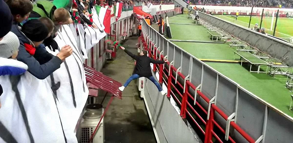 Фанат "Локомотива" совершил зрелищный побег от стюардов в стиле спайдермена (ВИДЕО)