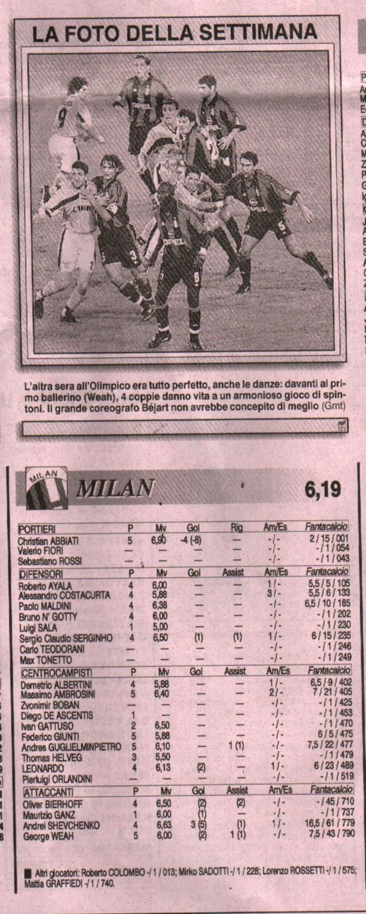Верон на позиції вільного художника забив 3 голи за 5 турів у новому клубі, дозволивши забути відхід Вієрі. Однак все шоу належало "Київському соловейку", як його називав легендарний коментатор Мілана Карло Пеллегатті. Шева гарно взаємодіяв з Веа, але для легендарного ліберійця, який передав Андрію естафету золотих м'ячів, це був один з останніх таких спектаклів перед трансфером у Челсі. Зірці збірної України вдалося у свій перший сезон взяти Капоканоньєре – з українською нормою якості у 24 голи випередив Батістуту (23) та Креспо (22). Згодом сам повторить цей показник і свій тріумф, а Довбик зробить те саме, але в Ла Лізі.
