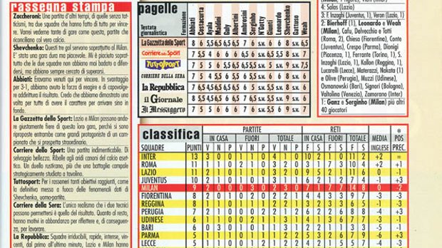 La Gazzetta dello Sport наступного ранку рясніла епітетами Шеві та компанії: "Величні!" Мілан починав свій новий шлях до вершин, що торували залишки домінантної ери Фабіо Капелло (Мальдіні, Альбертіні, Костакурта), натхненні свіжим вливанням грандіозних талантів, які стали опорою Анчелотті в середині 2000-х (Шевченко, Гаттузо, Сержінью та Абб'яті). Той Мілан довго народжував трофеї, аж до Ліги чемпіонів 2003, коли Ерікссон вже був у збірній Англії, а Лаціо – на межі банкрутства після років безрозсудних витрат і влізання в борги. Ціна, яку варто було заплатити, аби побачити цю велич.