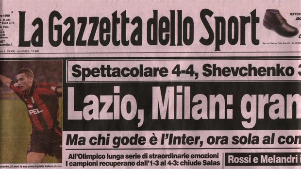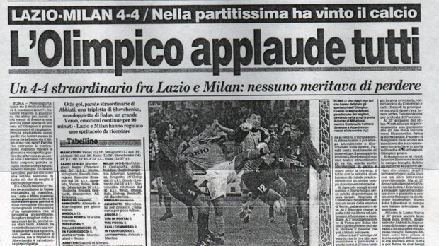 Це був матч, який багатьох новоявлених фанатів Серії А ще більше утвердив у бажанні дивитися цю лігу з великим інтересом. Таких вже давно не випускають в Італії. З різким зменшенням бюджетів стався відплив найкращих футболістів. Та ці золоті часи Кальчо досі не відпускають серця справжніх тіфозі! Тим паче, що королем гри в цій італійській драмі був українець Андрій Шевченко. Матч Лаціо – Мілан (4:4) увійшов завдяки його внеску до золотої колекції світового футболу. Згадуємо, як і з ким це було.