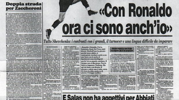 Вболівальники "россонері" скандували: "Він не бразилець, але який гол забиває! Залиште Феномена Роналдо там, Шева тут!" У рік сторіччя заснування Мілана клуб витратив 41 мільярд тоді ще стареньких італійських лір. Рідкісний діамант з України не підвів. "Київський Бембі. Король Сходу. Його величність Андрій Шевченко". Він став остаточно визнаний всією Італією. А ще приємніше, як використав цей імпульс. Через кілька днів після того матчу, а саме 9 жовтня, Шевченко змусить всю Росію плакати через той самий гол з немислимої дистанції у ворота Філімонова. Культовий удар у відборі Євро-2000 визначить долю групи, в якій Україна пройде далі, а її сусід залишиться ні з чим.