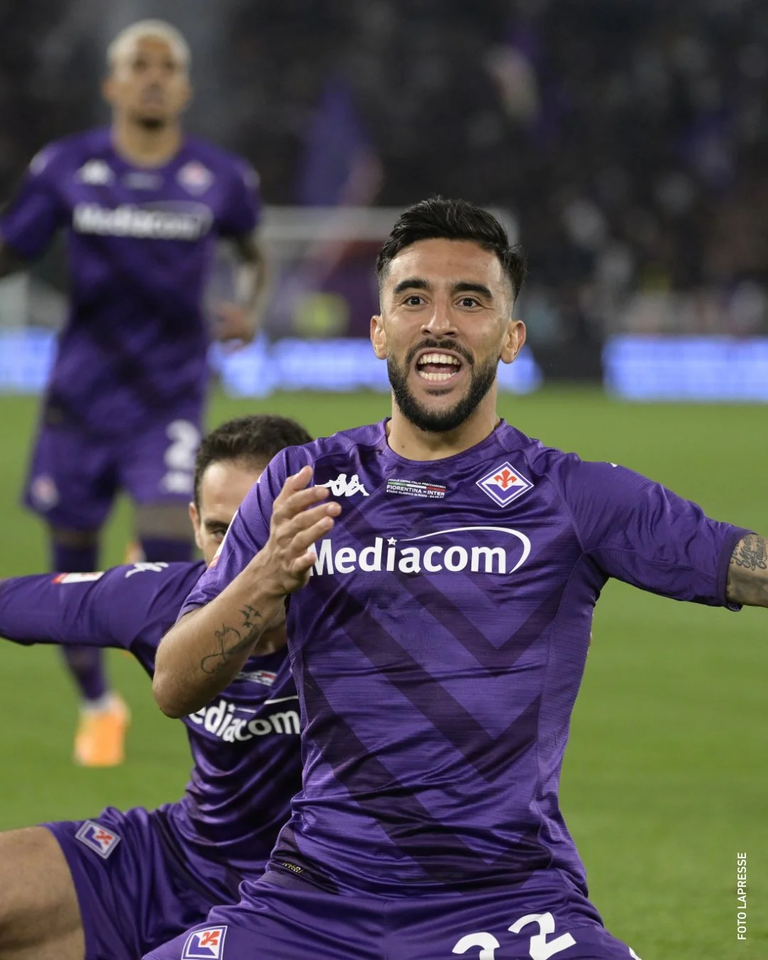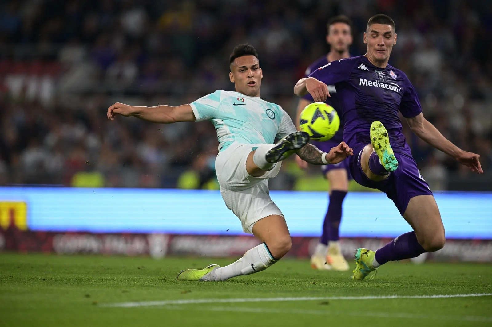Интер ответил моментом Джеко, удар которого заблокировали. Еще одна атака Фиорентины была острее. Додо перевел с правого фланга в центр, на удар вывели Амрабата, который чуть не попал. Понравилась команда Винченцо Итальяно в первые минуты, полностью контролируя ход событий на поле Стадио Олимпико. За исключением 24-й минуты, когда Лаутаро вывел Джеко один на один с Терраччано. Эдин забил немало голов на Олимпико в составе Ромы, но этот момент упустил, пробив выше. Первый реальный провал в защите "фиалок".