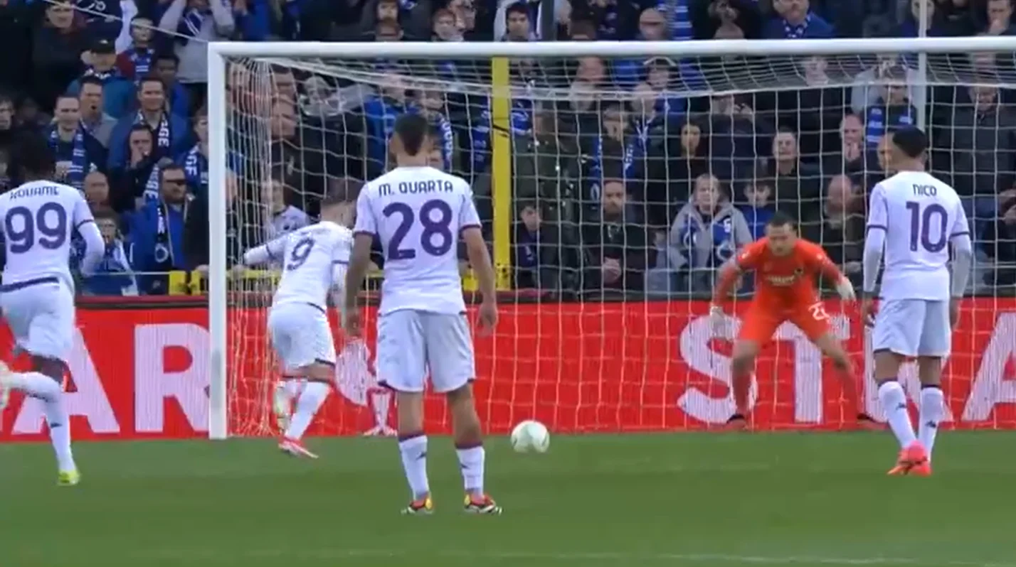 Фиорентина зажала соперника у своих ворот и накатывала атаку за атакой. Казалось, "фиалки" вот-вот пробьют защиту бельгийцев. И на 83-й минуте они добились своего – Мехеле коленом попал в лицо Нзолы, который пытался замкнуть прострел от партнера. Арбитр указал на отметку. Голкипер угадал направление удара, но Белтран сумел пробить впритирку со стойкой – 1:1.