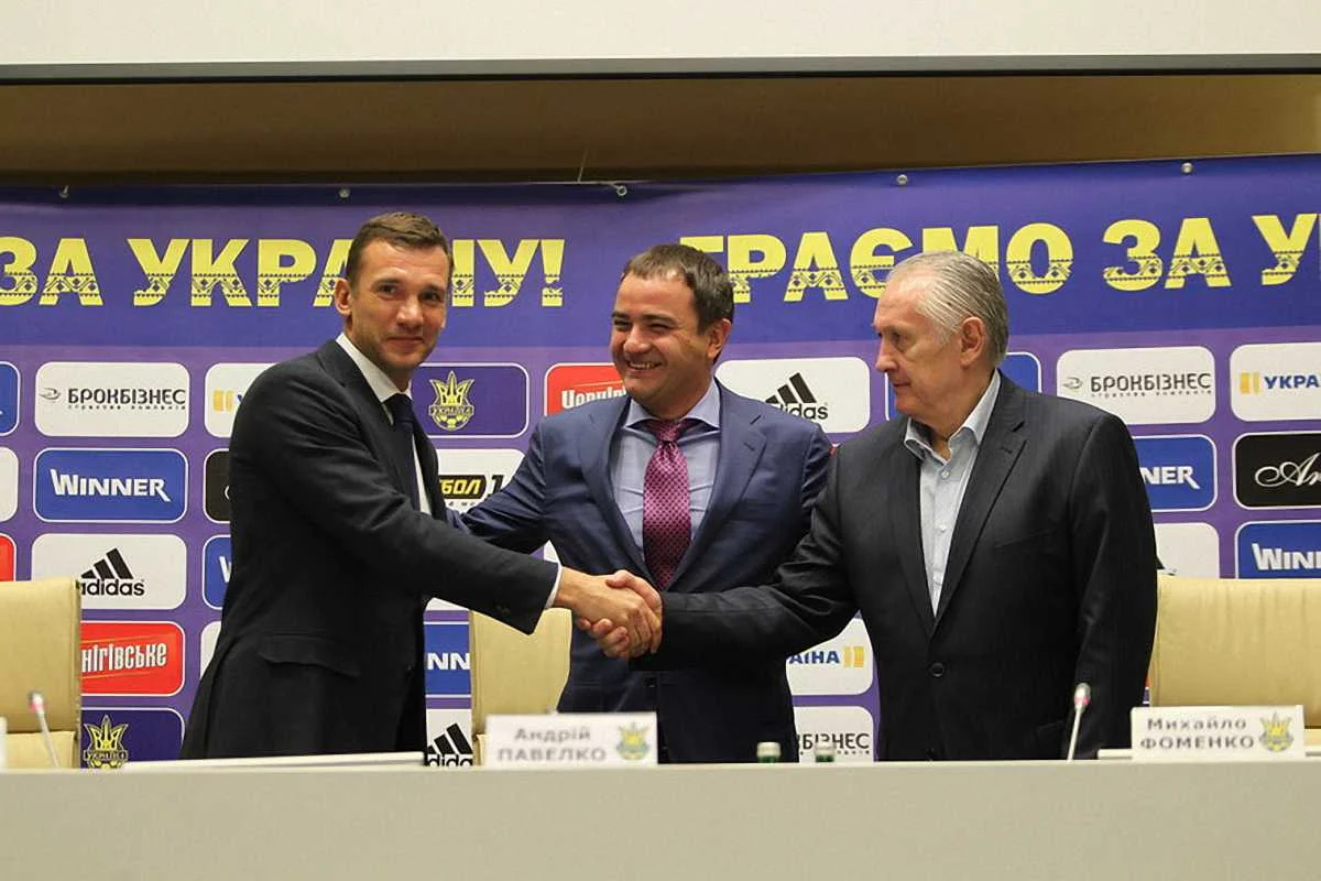 Андрей Шевченко, Андрей Павелко и Михаил Фоменко / фото Футбол 24