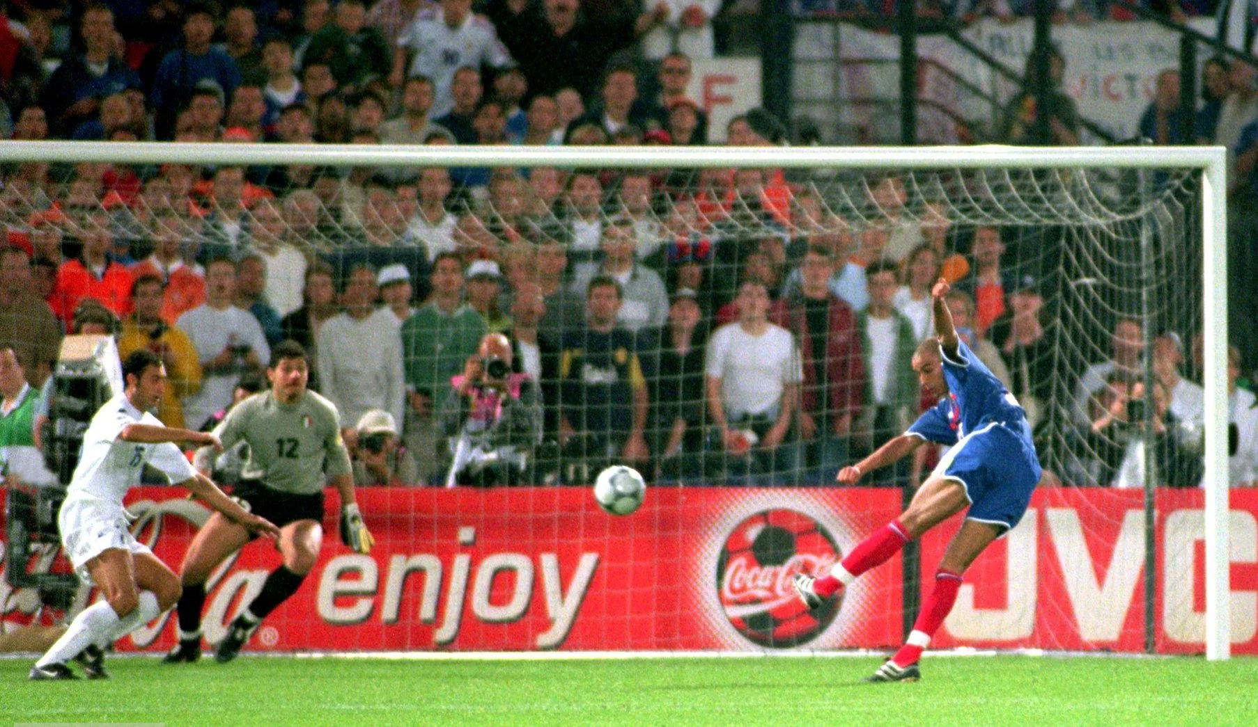 Знаменитый экс-форварда лондонского Аренала Сильвен Вильтор, который вышел на замену, перевел игру в овертайм на 90+3 минуте, а в первом дополнительном тайме Давид Трезеге забил золотой гол Чемпионата Европы-2000, досрочная завершив игру.
