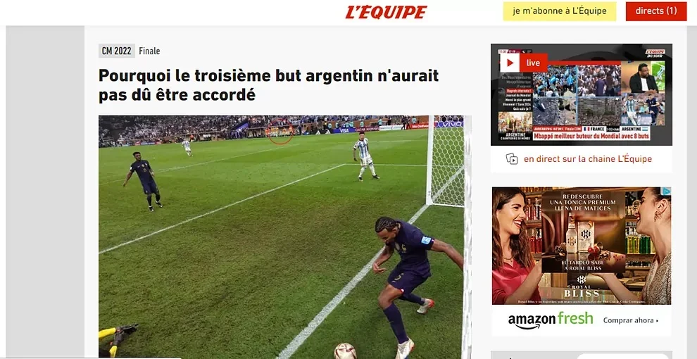 Издание L'Equipe после финала Мундиаля опубликовало статью с заголовком "Почему нельзя было засчитывать третий гол Аргентины?", а французские фанаты поддержали призыв, информирует Marca.