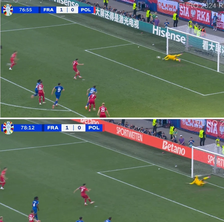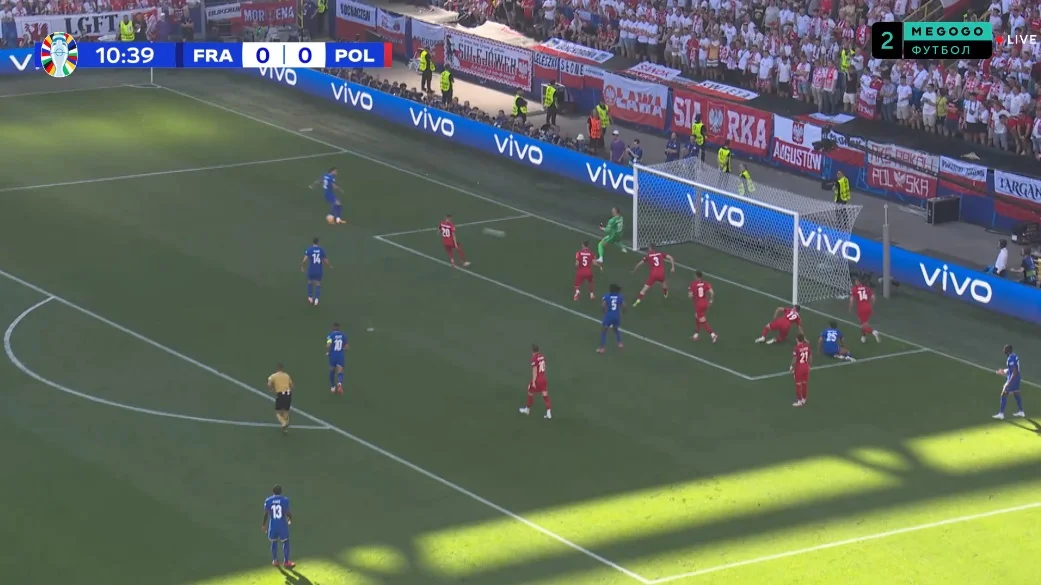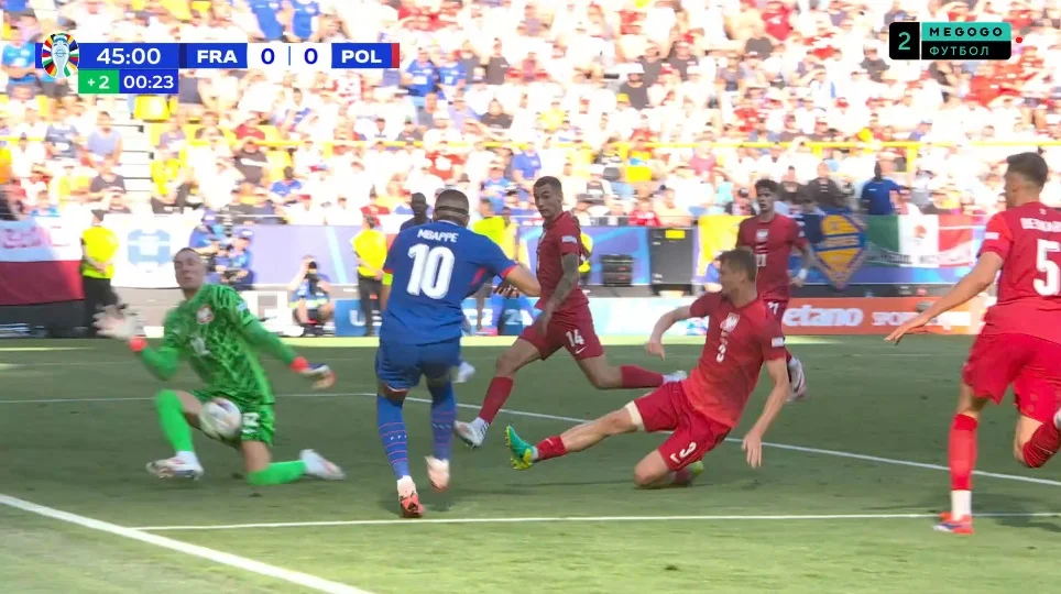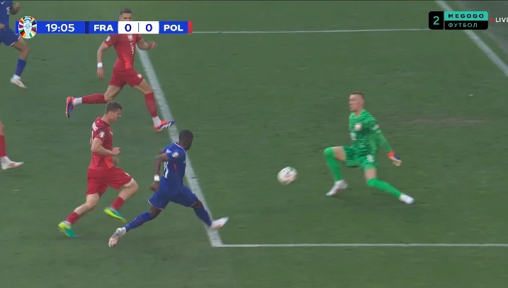 На 20-й минуте мяч через центр протащил Канте, который в завершении вывел Дембеле один на один. И снова голкипер выручил Польшу!