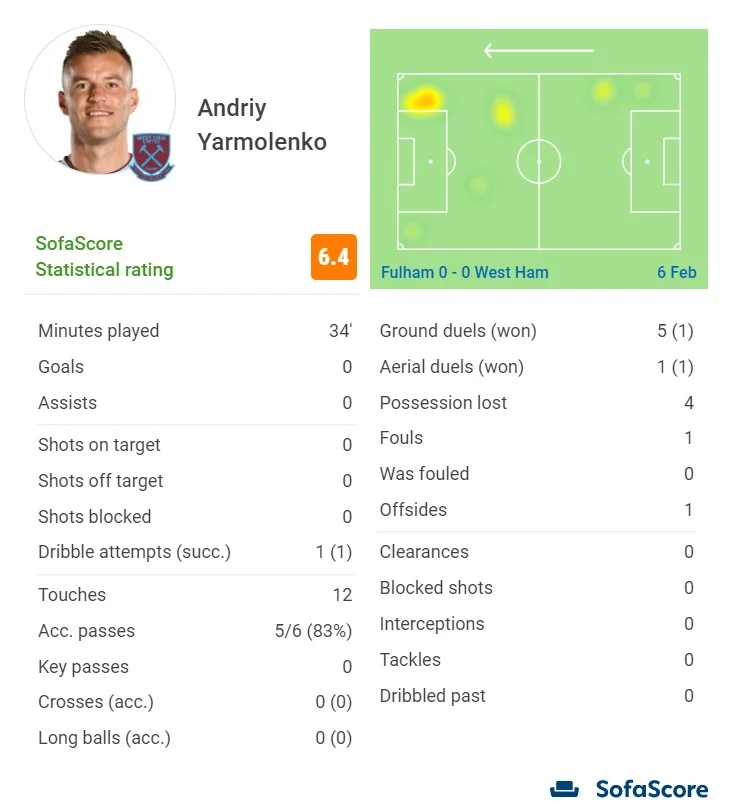 Нужно было что-то менять, потому Дэвид Мойес на старте второго тайма совершил двойную замену. Андрей Ярмоленко вышел вместо Боуэна и впервые за долгое время сыграл на родном правом фланге. Украинец сразу включился, пошел в обводку и попытался обострить. В следующих эпизодах Ярмола уже выбирал самые простые варианты и пасовал ближнему.