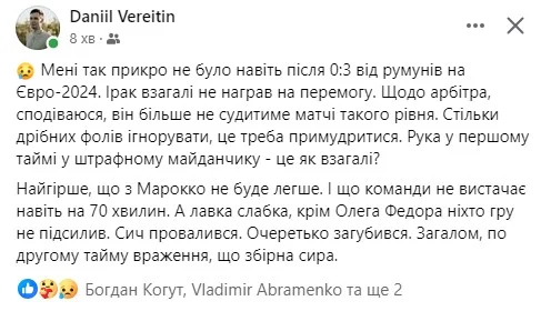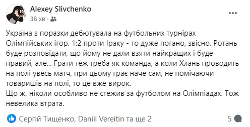 Перша реакція експертів та відомих уболівальників на матч стартового туру Олімпіади-2024 Ірак – Україна (2:1).