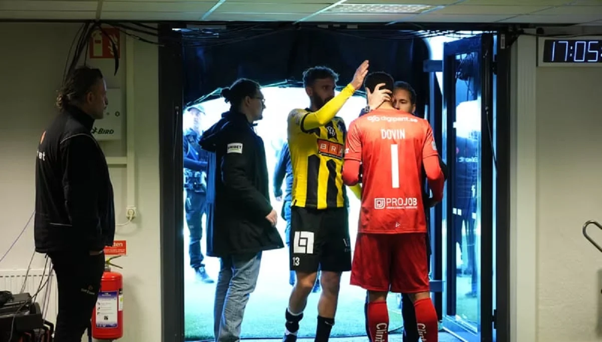 На 5-й минуте игры после паса назад от своего защитника вратарь позволил мячу проскочить мимо. Довин перепутал мяч с 11-метровой отметкой и пытался пробить по ней. Несколько секунд было достаточно, что нападающий Хакена Бени Траоре сориентировался и открыл счет. Отметим, что в итоге Хаммарбю проиграл со счётом 1:3.