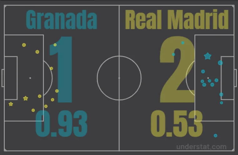 Реал здорово начал, но остановился после второго гола. До перерыва на поле ещё была более-менее равная игра, но на второй тайм команда Зинедина Зидана не вышла – вышли какие-то другие футболисты. 10:3 по ударам, 3:1 в створ, 8:0 по ударам из пределов штрафной, 9:3 по ключевым передачам, выносам мяча с линии ворот, панические ситуации, гол – всё это было в пользу скромной Гранады. Да и за весь матч мадридцы наиграли всего на половину гола против 0,93 в Гранады, а также уступили по количеству проникающих пасов (3:4). Да, в середине второго тайма игра выровнялась, но на большее "сливочных" не хватило. И это при счёте 1:2!