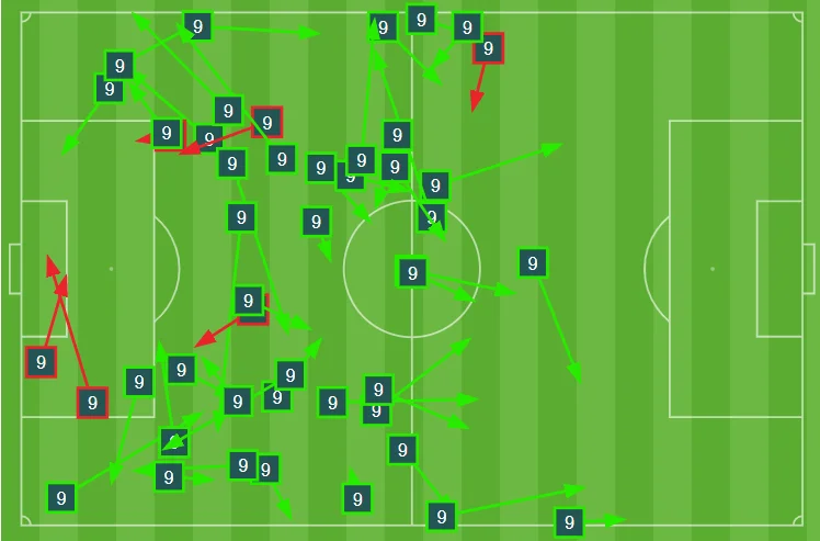 Бензема вновь сосредоточился на помощи команде, примерив на себя роль диспетчера Реала. Карта передач ярко демонстрирует, почему Карим стал главнім фактором успеха Мадрида – форвард был везде и редко ошибался.