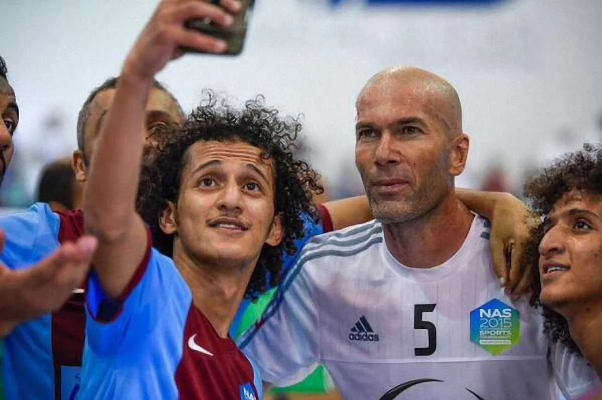 Во время футзального матча в Дубае игрок соперника команды Зинедина Зидана решил сделать селфи с легендой и получил за это наказание.